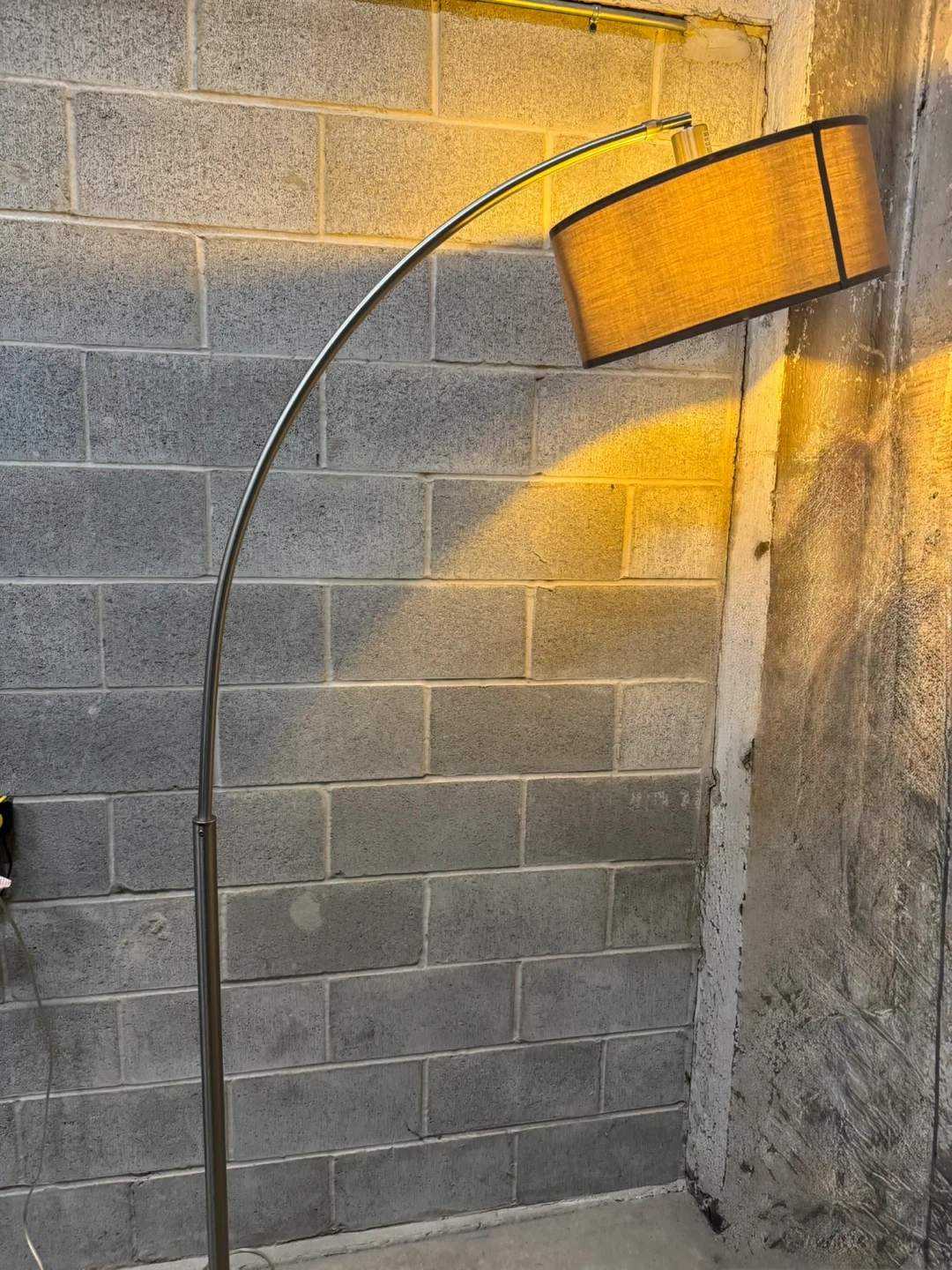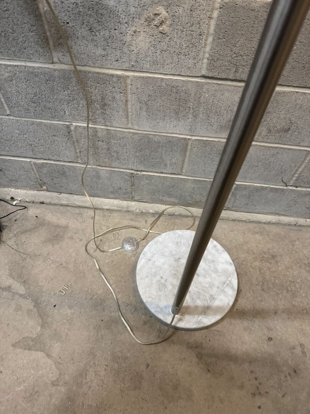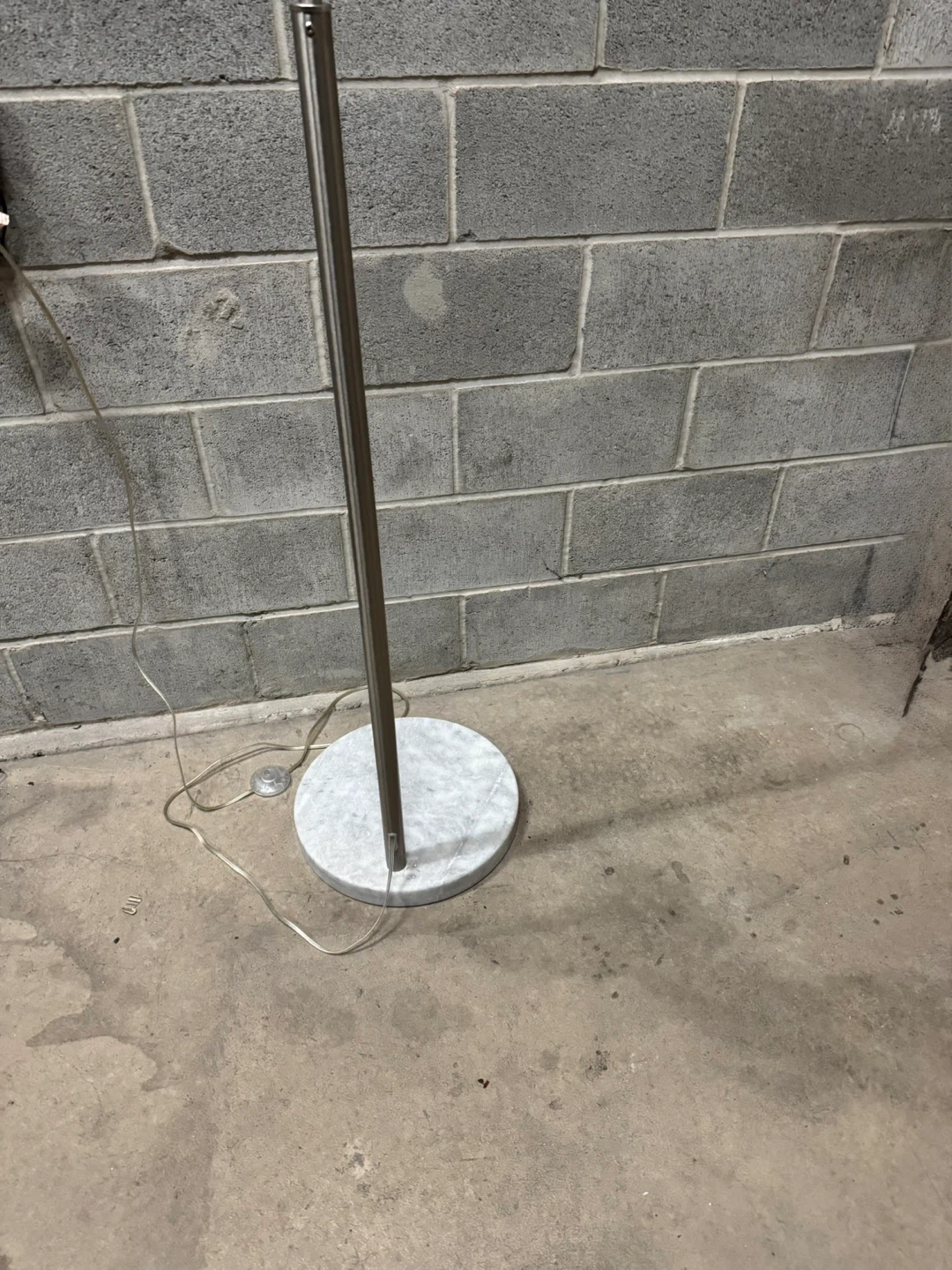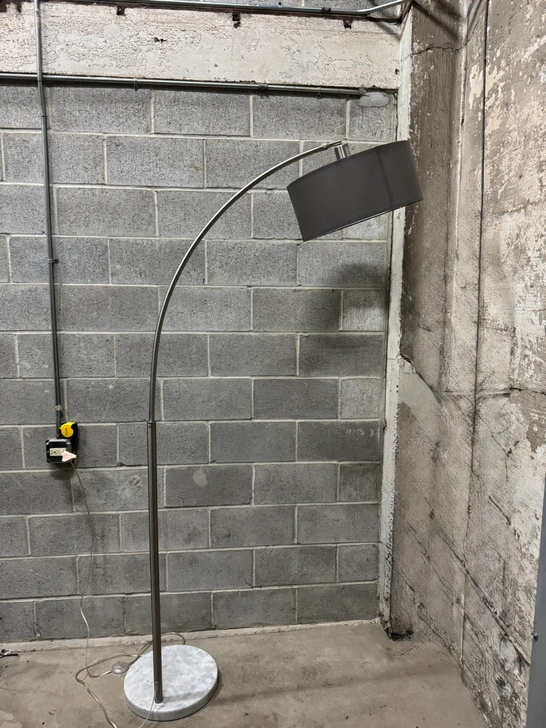 Selling an arc floor lamp with a marble base. It has a sleek, modern design that would look great in any living room or office space. The lamp is in good condition and provides ample lighting Floor Lamp with Marble Base and Grey Linen Lampshade Overhead Bedroom, Home Office Ligh 83 tall 60$ cash