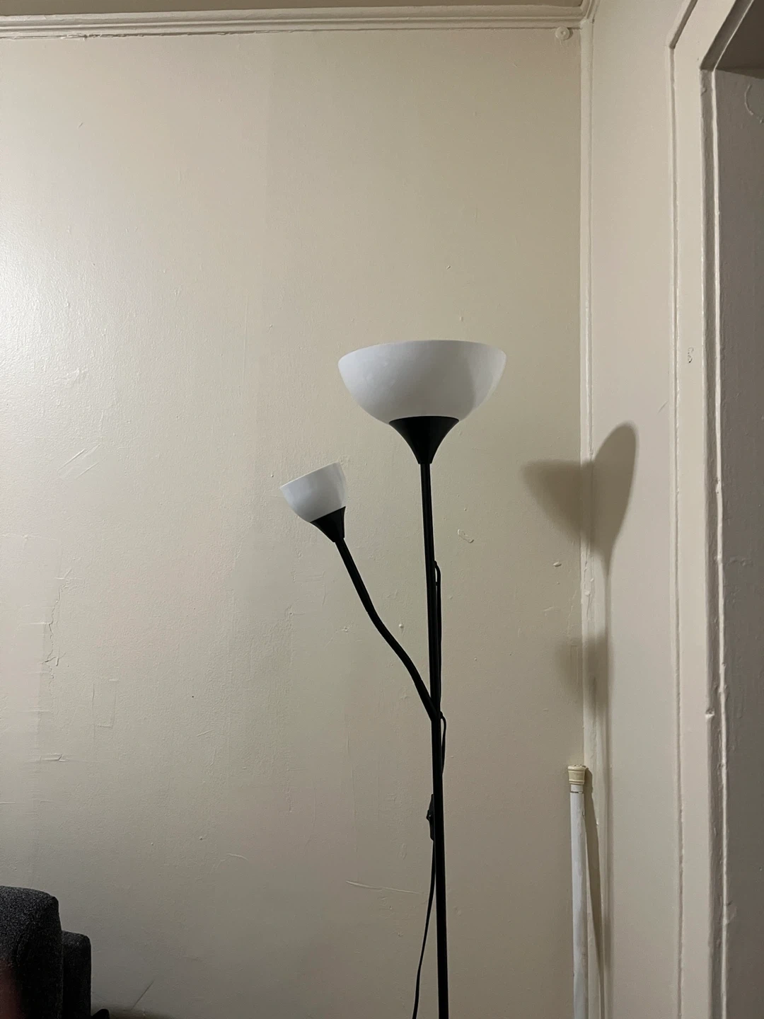Selling a floor lamp with a reading light. It's in good condition and provides great lighting for any room. Has two bulbs in natural light color.
