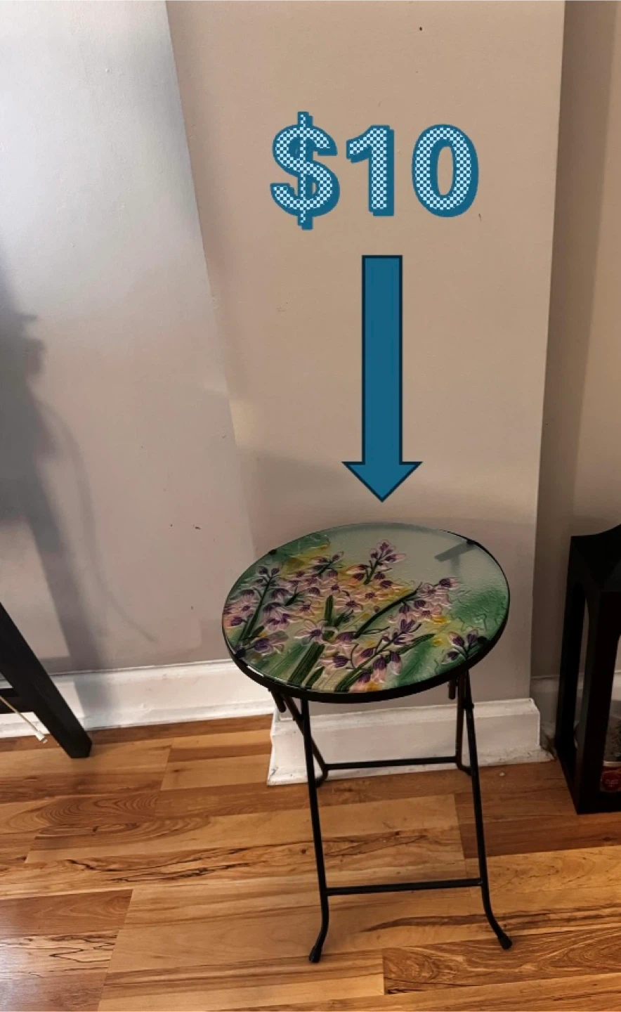 5Cute little accent table with a floral design on top! Perfect for adding a touch of spring to any room There’s two of these! $20 total (both of them must go)