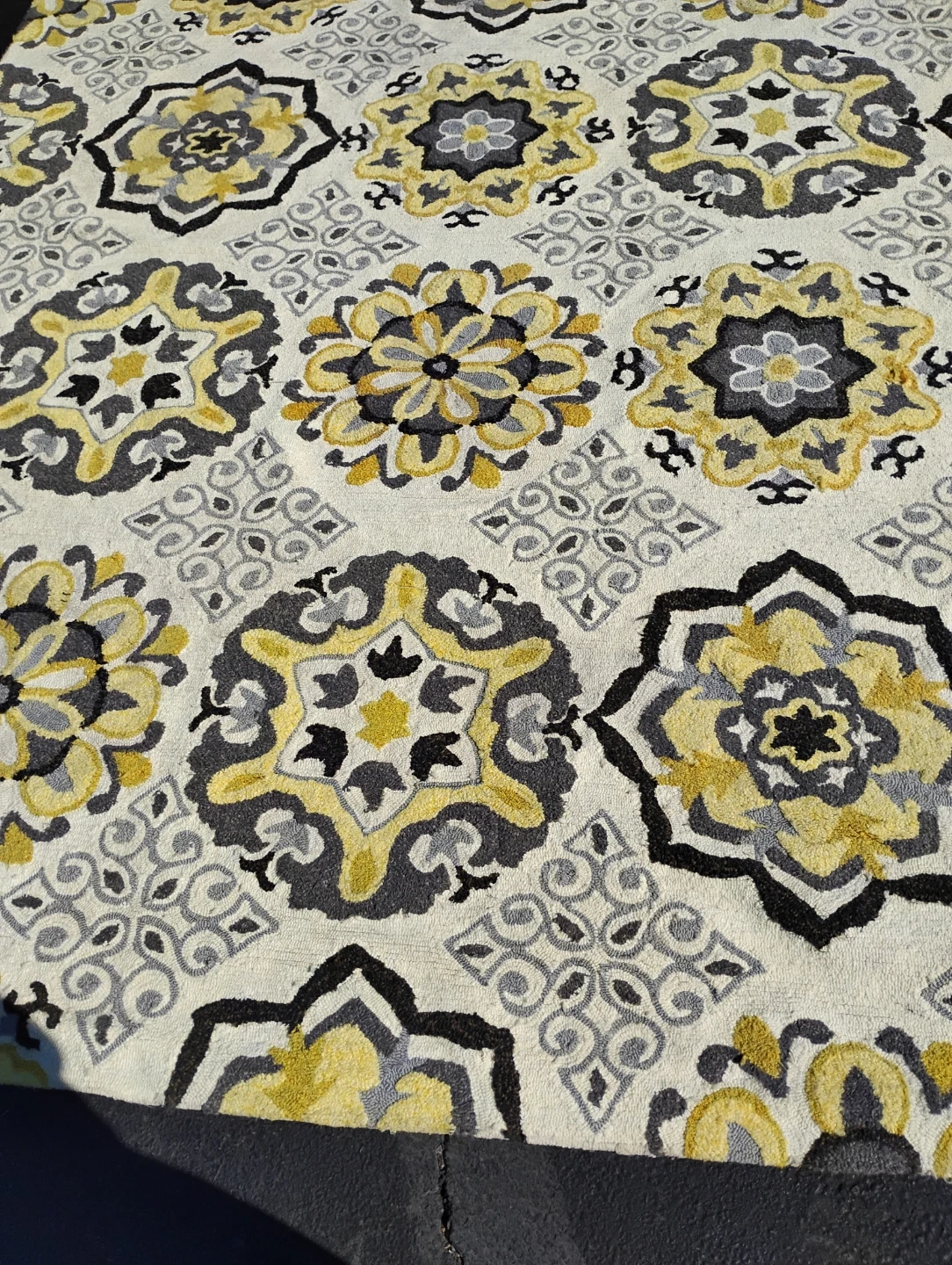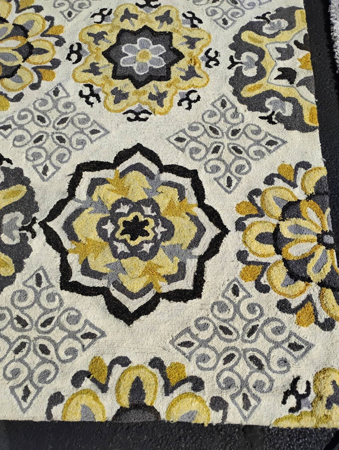 10This area rug features a beautiful floral pattern in shades of yellow, gray, and cream. It would be a great addition to any room!
