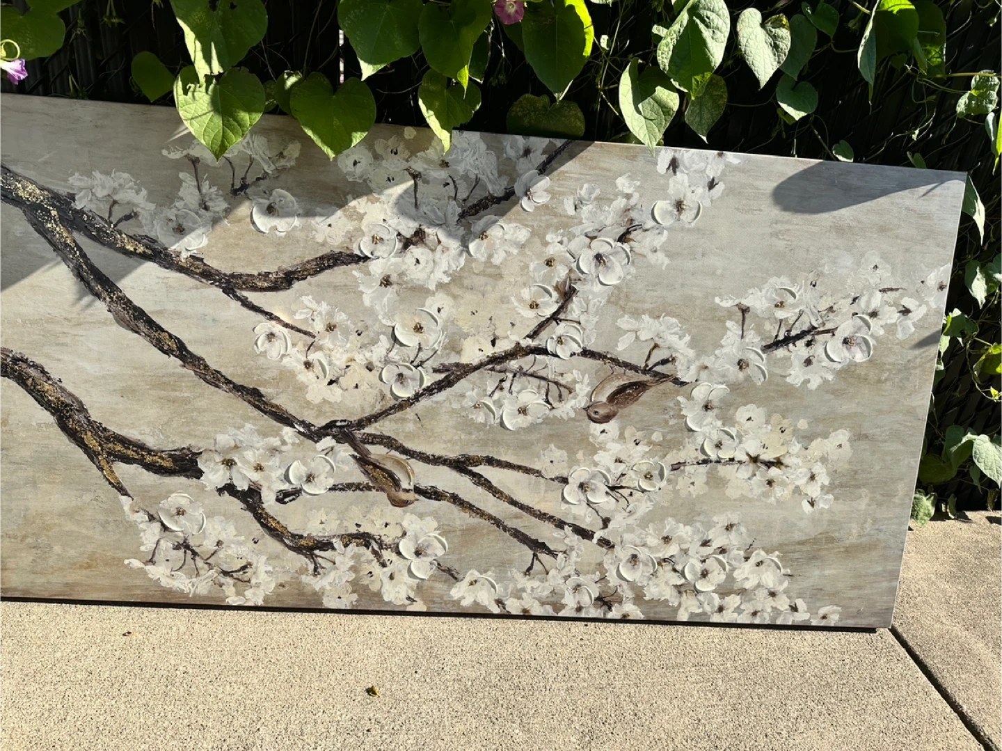 62This is a piece of floral canvas wall art. It measures approximately 59 inches in length and 33 inches in height. It would be a great addition to any room!