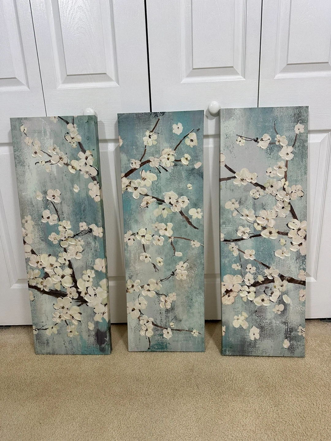 10I'm selling a set of three canvas wall art pieces featuring a beautiful floral design. They're perfect for adding a touch of elegance to any room