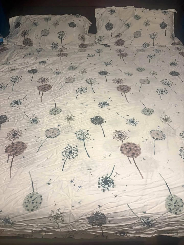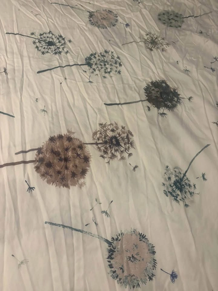 Used only a couple times because it doesn’t match my bedroom pictures and decor. I really did like it but doesn’t match. Comes with a duvet insert. Both size king and two pillow shams.