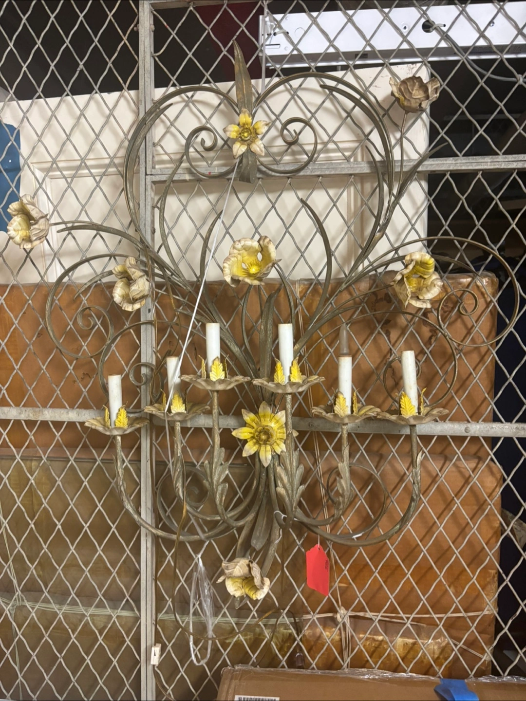Selling a beautiful floral metal chandelier! It features delicate metalwork with floral accents, perfect for adding a touch of elegance to any room 36inch hight 32inch wide