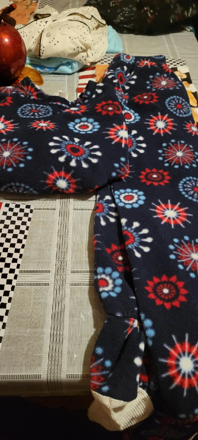 10Snuggle up in this adorable pajama set! It features a navy blue background with a fun floral pattern in red, white, and light blue. Perfect for comfy nights and lazy mornings never worn