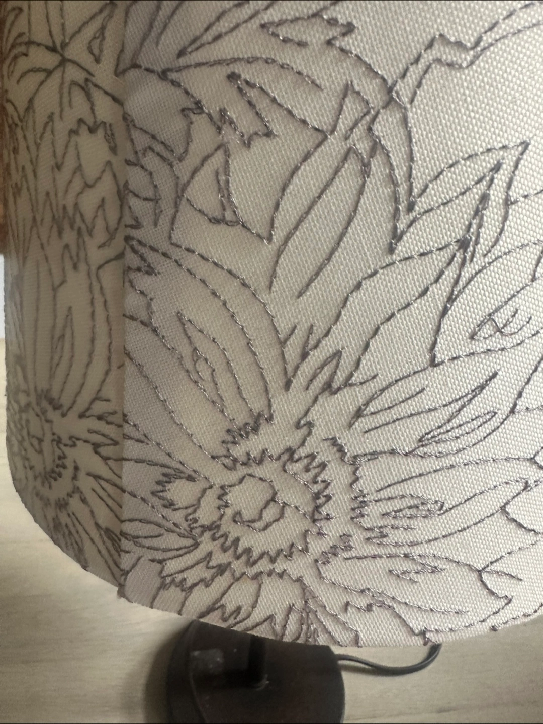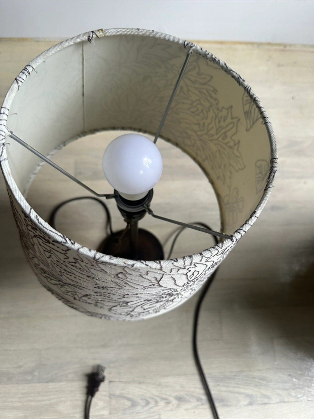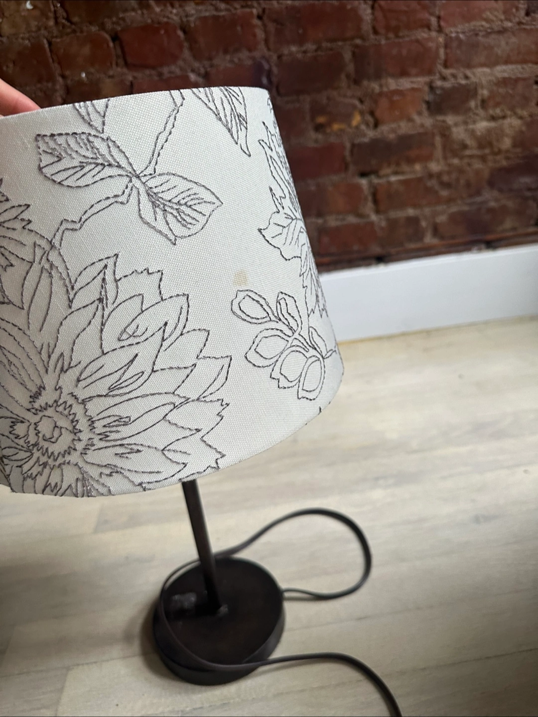 Selling a cute table lamp with a floral pattern on the shade. It’s so cute but note that this particular base only works when plugged in, sadly the pull chain doesn’t work. Still super cute though and the shade can be put on another base too!