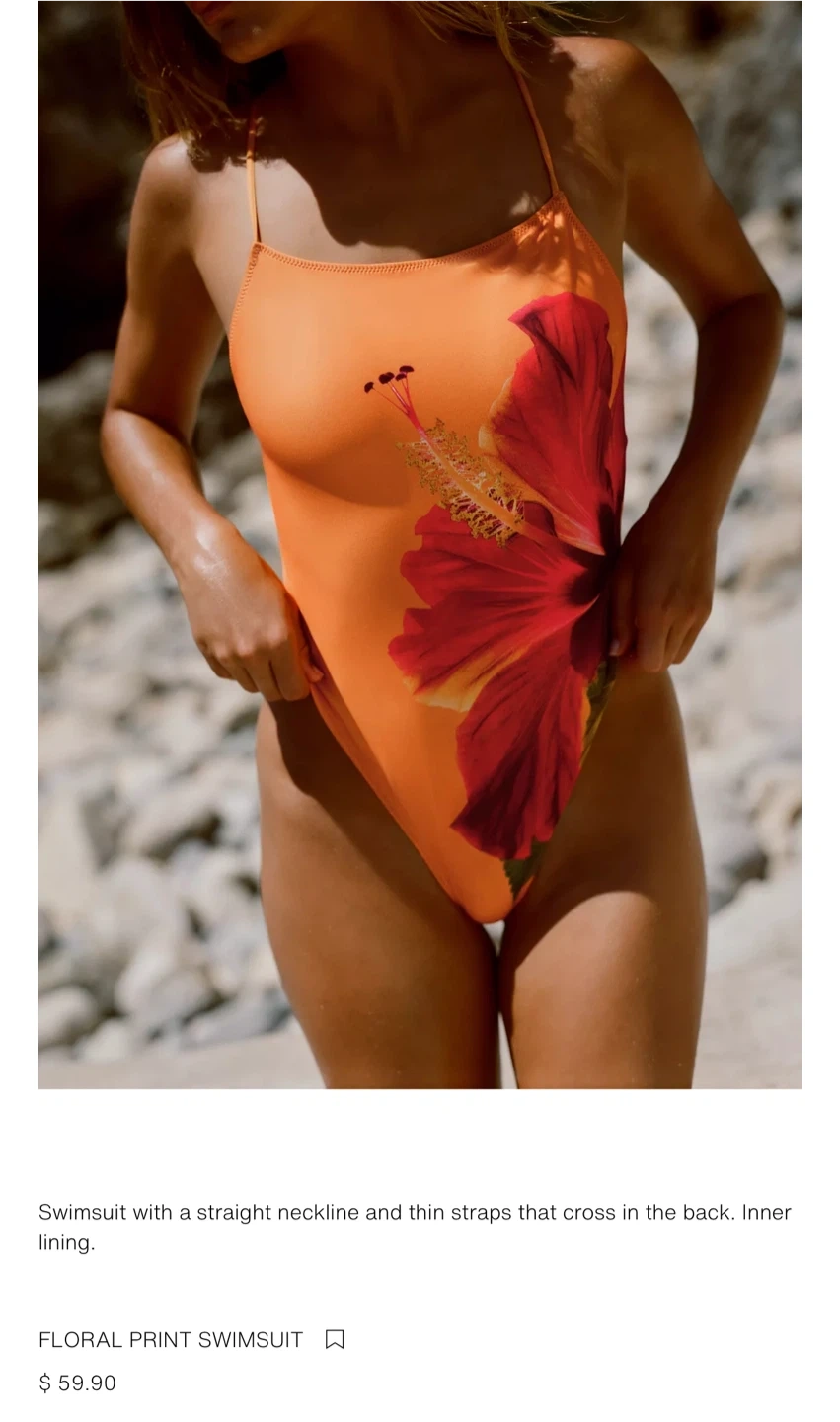 65Swimsuit with a straight neckline and thin straps that cross in the back with inner lining. Originally bought for $59.90