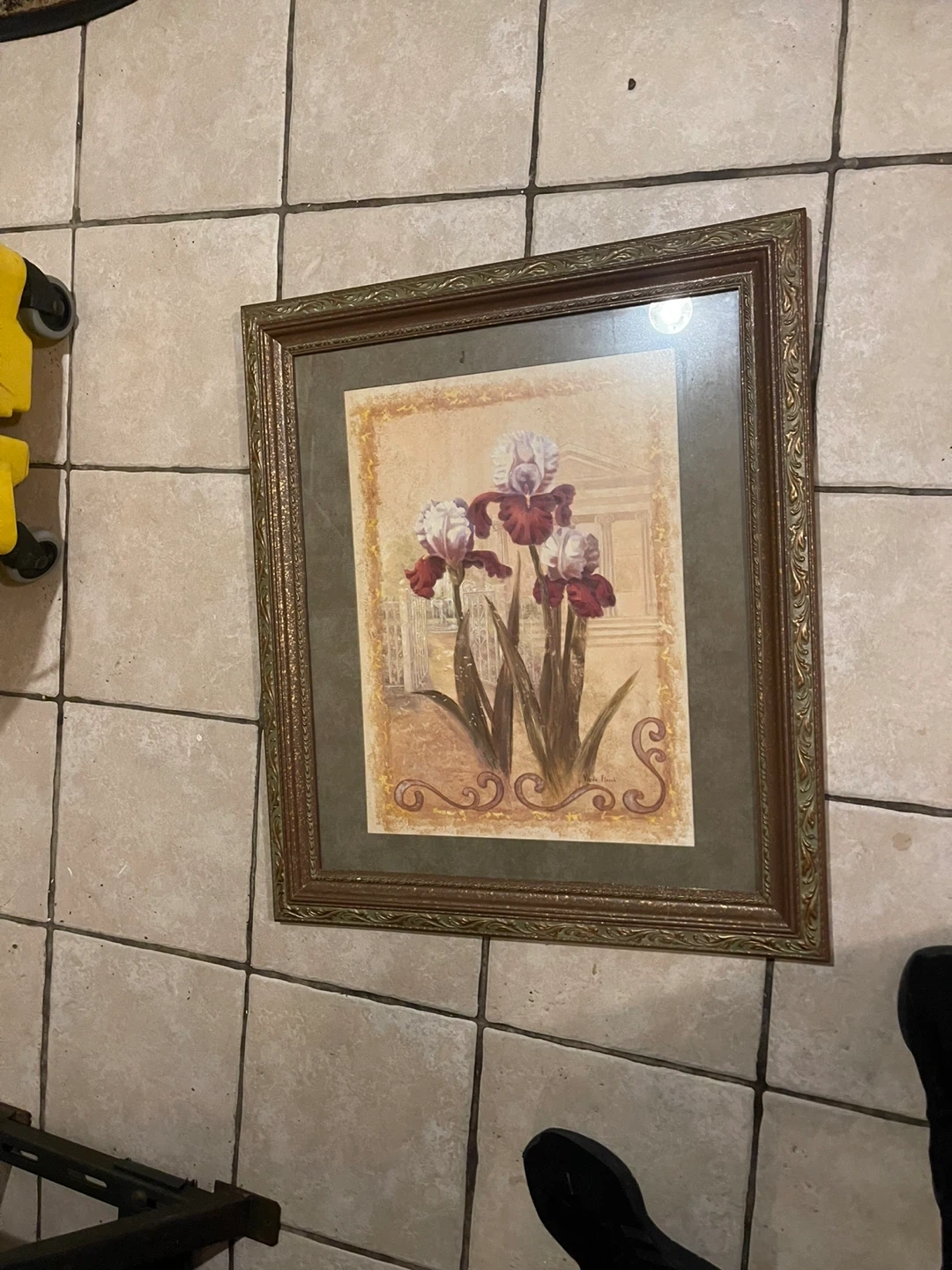 This is a framed floral print wall art piece. It features a beautiful floral design in a decorative frame. It's in good condition and ready to add a touch of elegance to your home decor