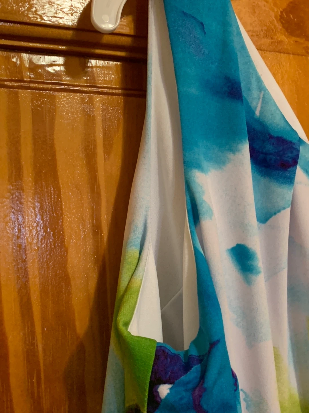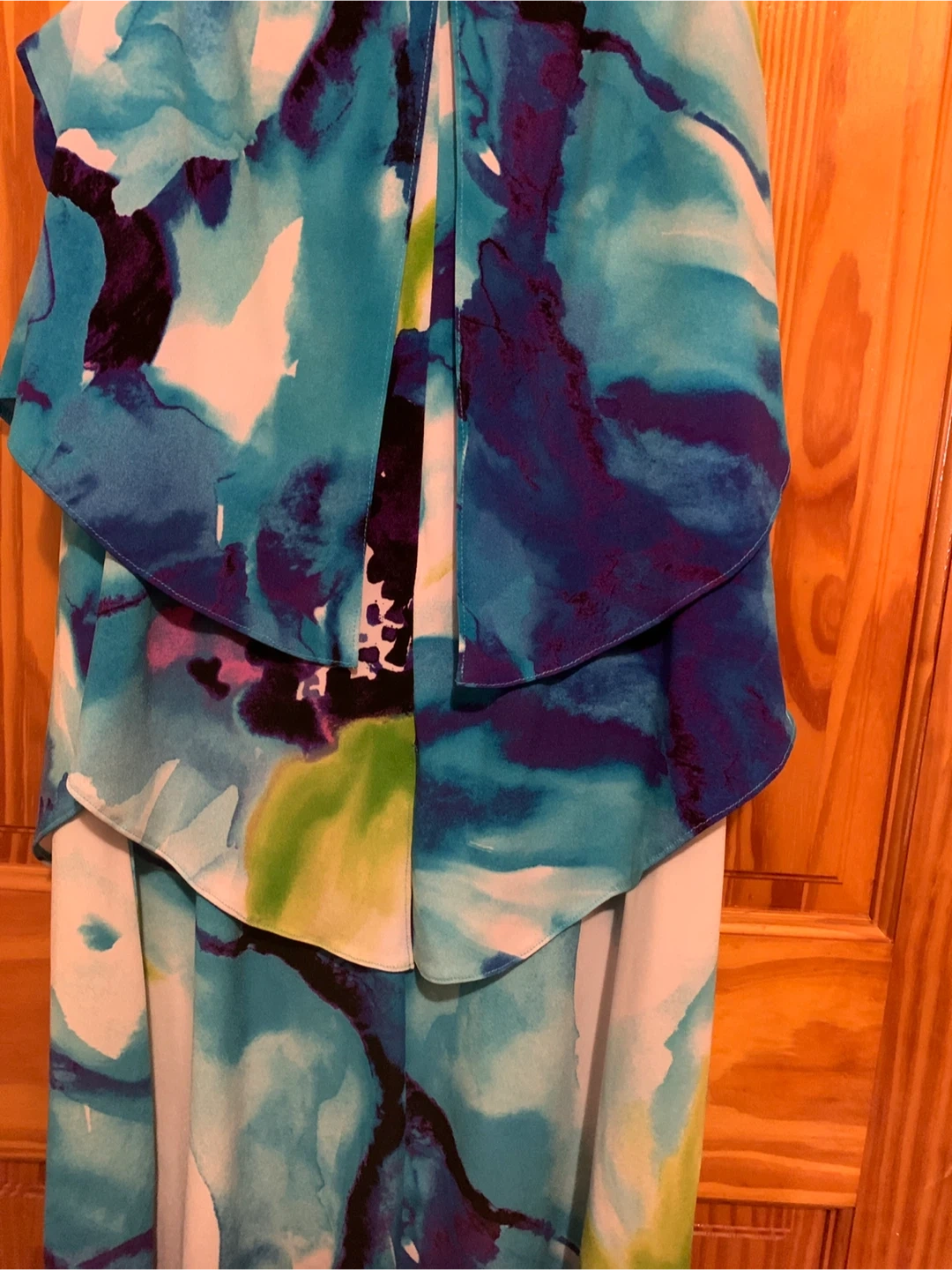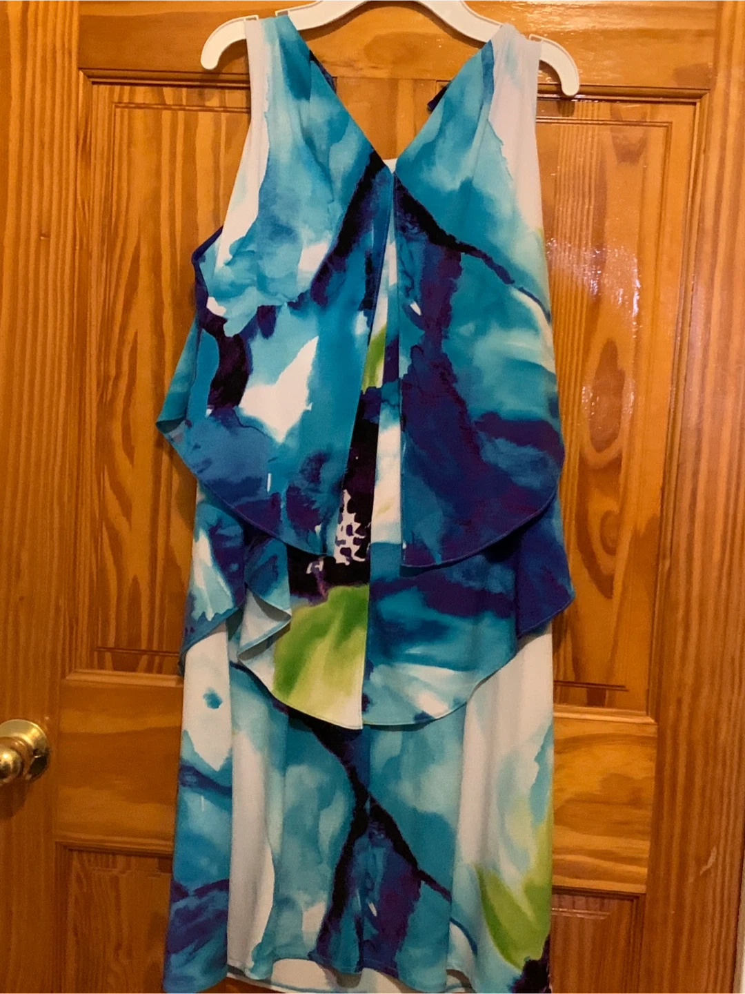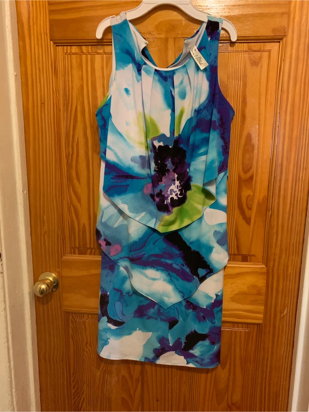 Here's a beautiful floral sleeveless dress! It has a lovely layered design. Perfect for a special occasion or a day out