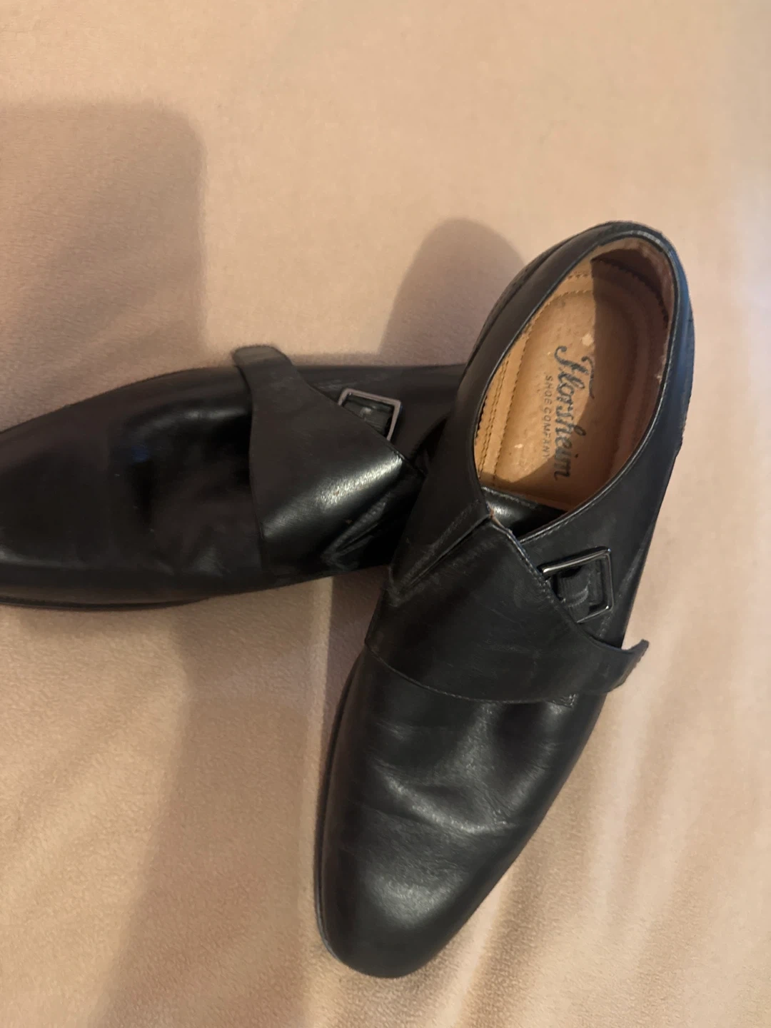 10Selling a pair of Florsheim black leather monk strap shoes. They show some signs of wear, but are still in good condition for everyday use. Perfect for adding a touch of class to your outfit!