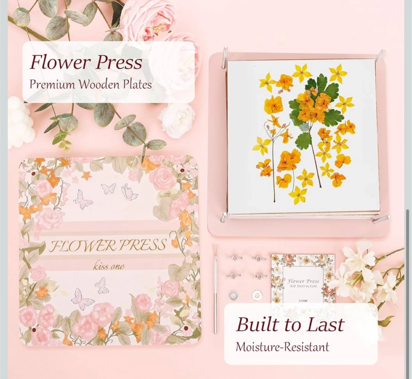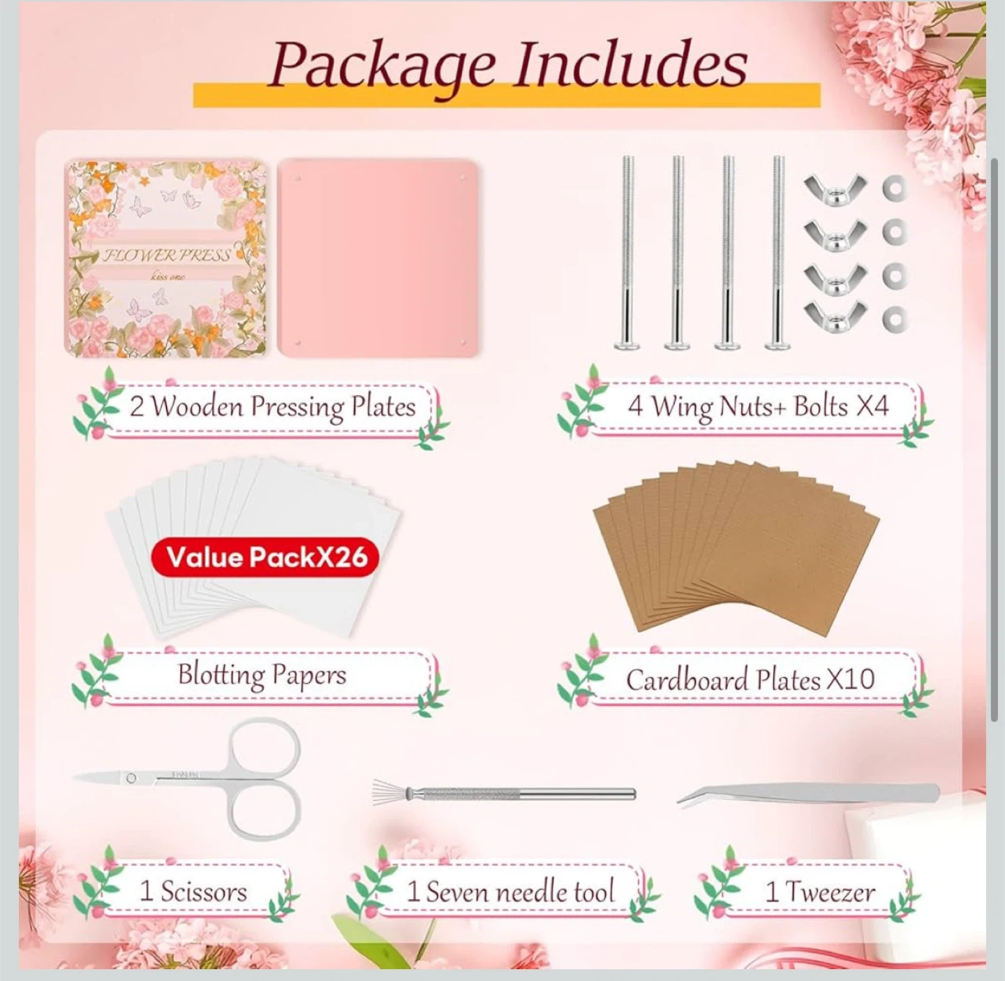 172Flower Press Kit – 11"x11" Large Wooden Plant Press for DIY Pressed Flowers & Bouquet Preservation | Scrapbooking & DIY Crafts | Craft Kit for Adults & Teens | Ideal Gift for Nature & Art Lovers