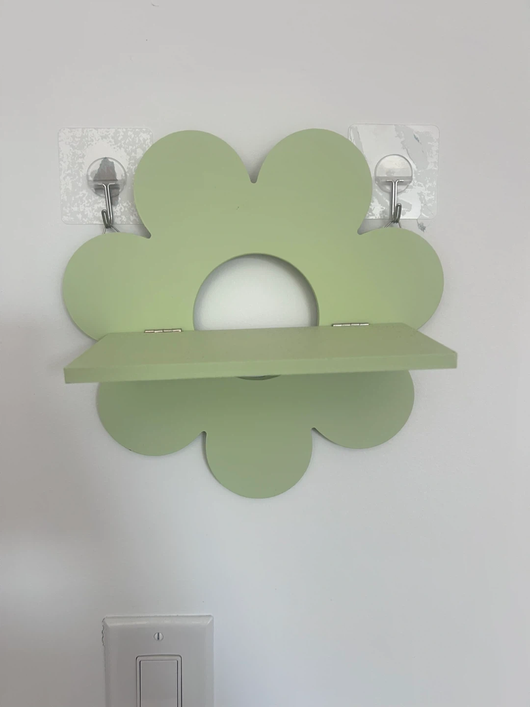 Cute flower-shaped wall shelf in a soft green color! It's perfect for adding a touch of color to any room. Great for displaying small plants, trinkets, or anything you want to show off.