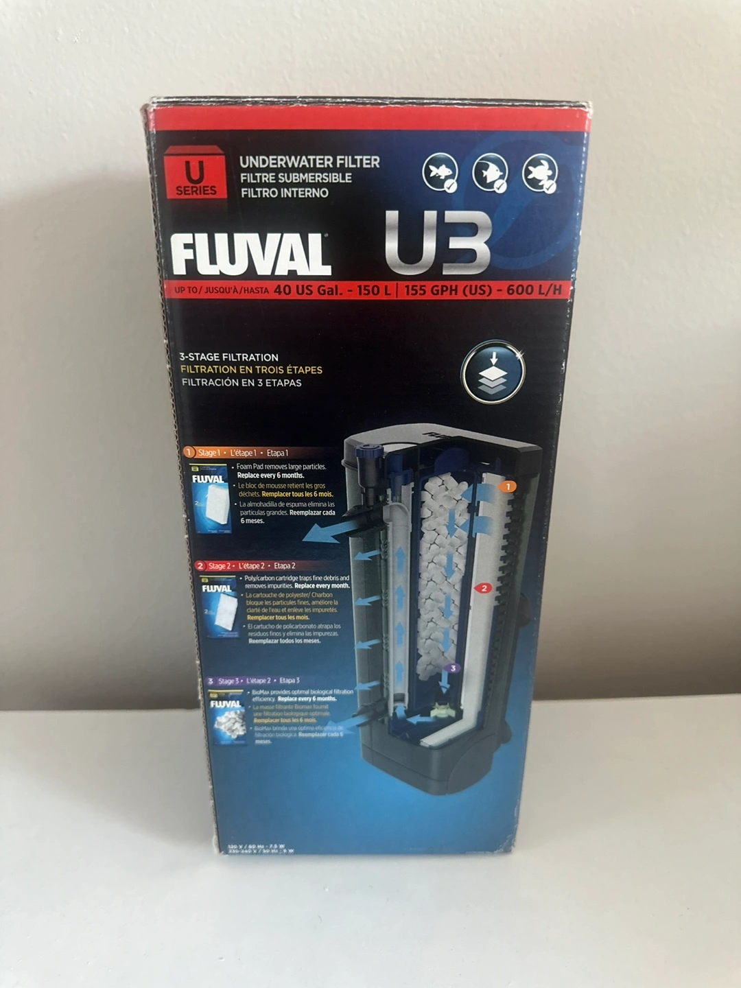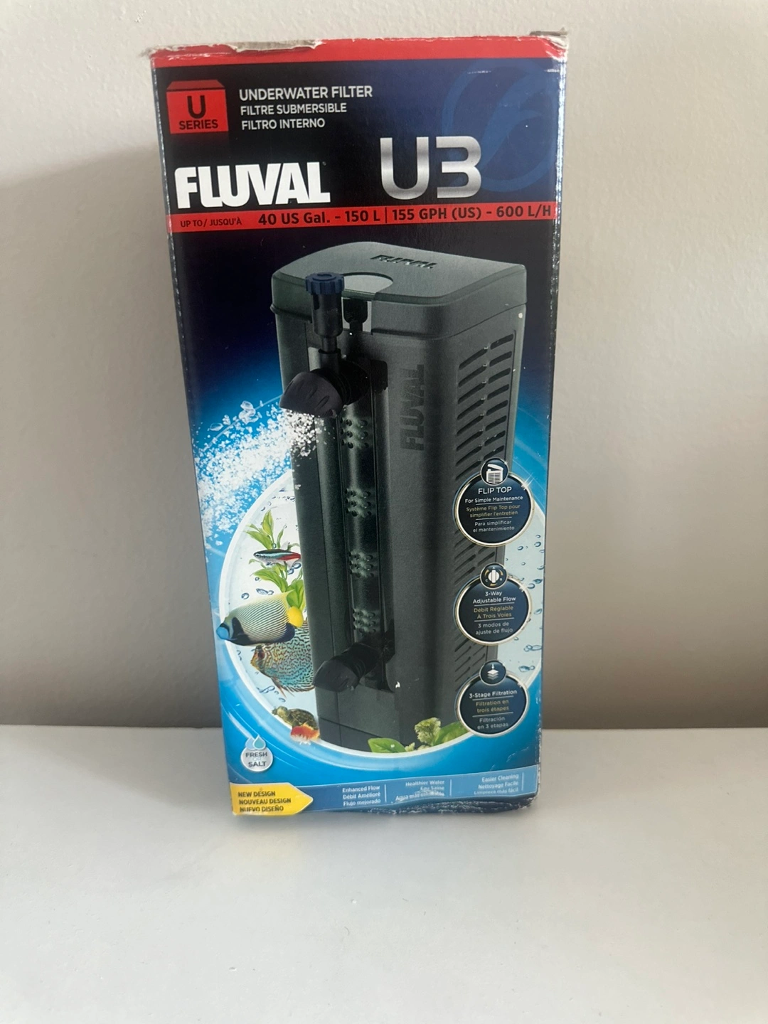 Selling a Fluval U3 Underwater Filter, suitable for aquariums up to 40 US gallons (150 L, 155 GPH (US) - 600 L/H). It features: - 3-stage filtration for optimal water quality - Adjustable 3-way flow for customized water movement - Quick and easy maintenance for hassle-free upkeep It was tested on an empty tank (just not the right size for my tank)