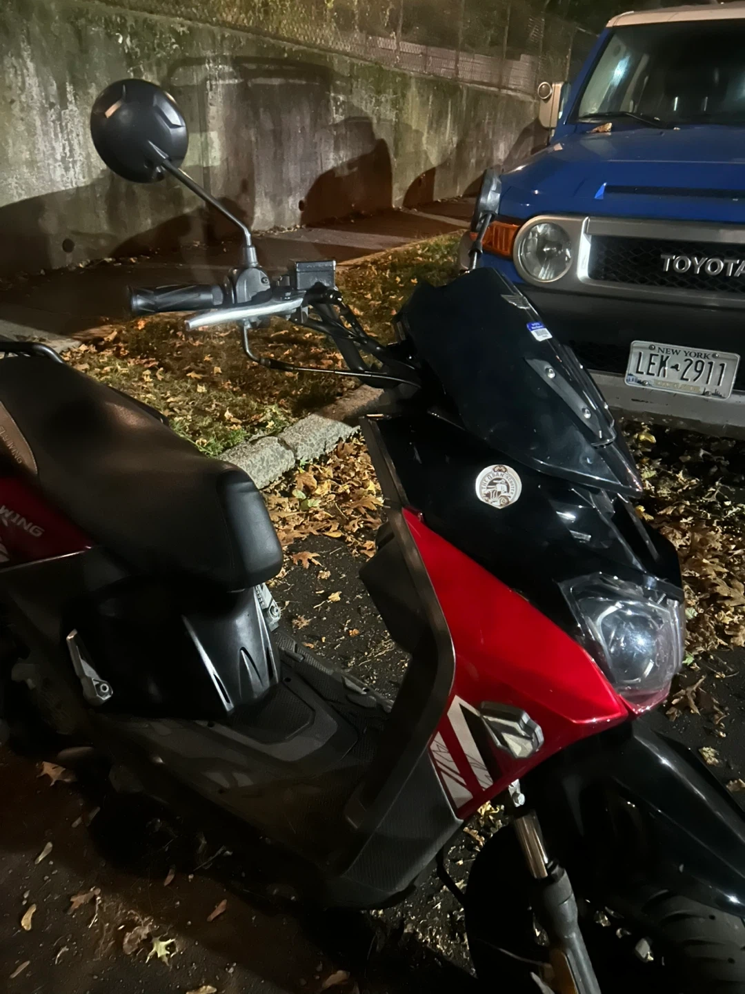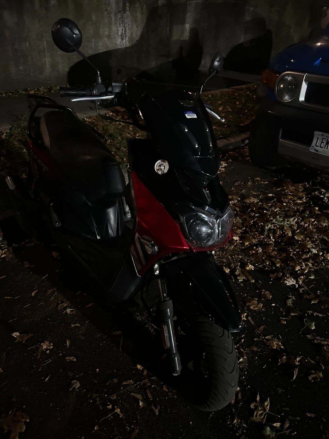 Selling a Fly Wing scooter in red and black. It's in good condition but lost keys it starts good tho an amazing breaks