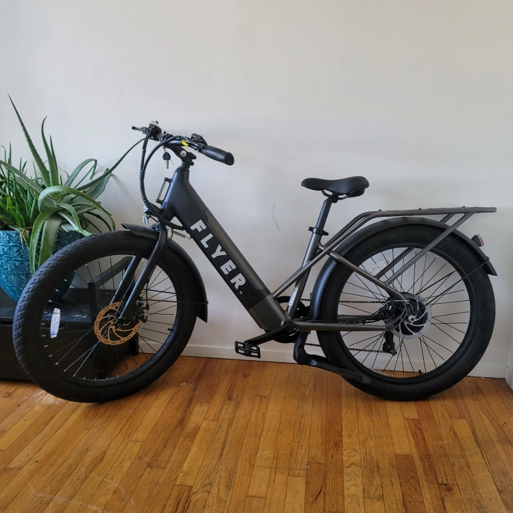 23Electric bike, fat tires, rear rack. Great condition, includes charger and instruction manuel. Ready to ride. I have only taken it for a spin once-- so BRAND NEW