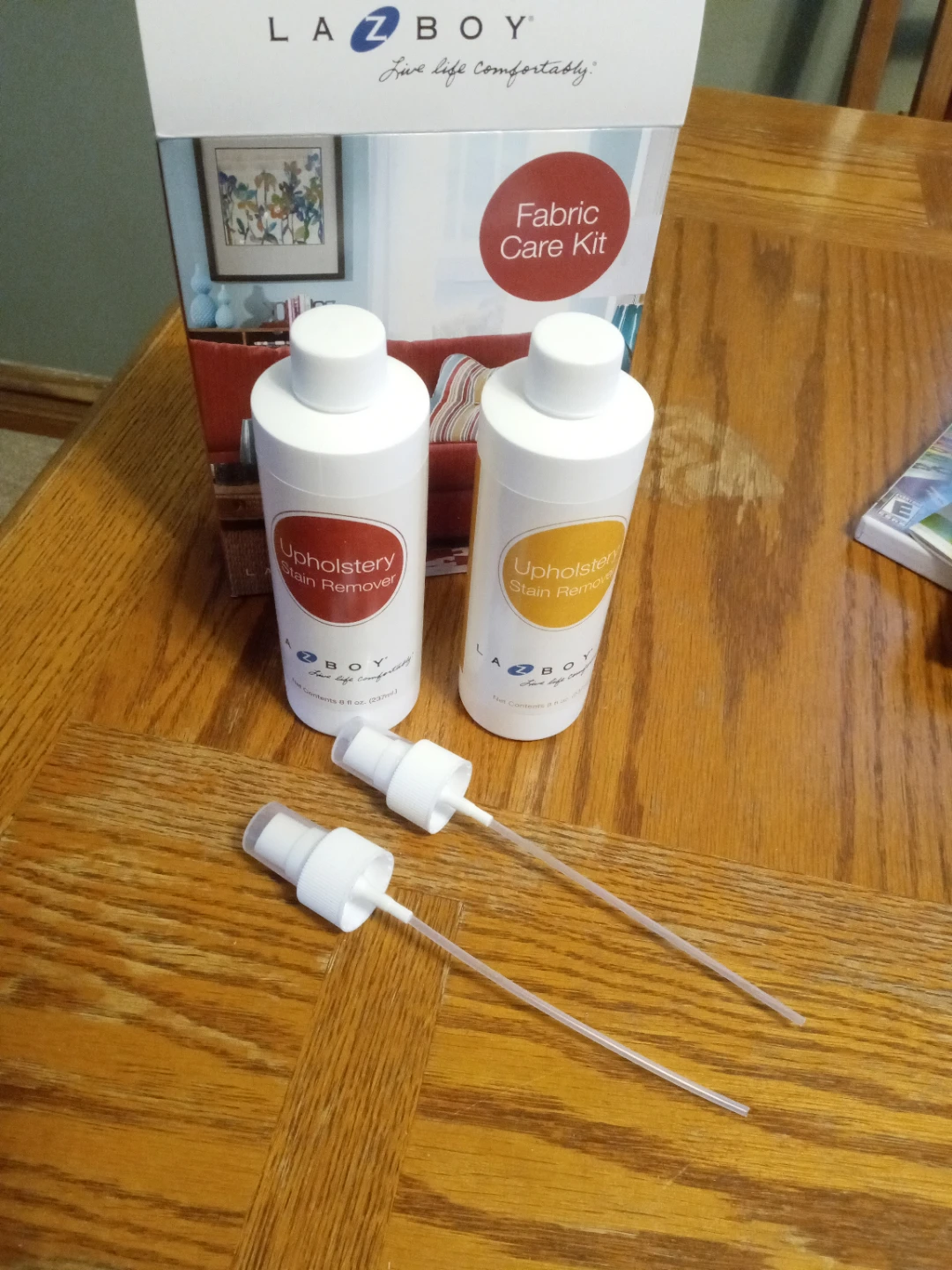 This La-Z-Boy Fabric Care Kit includes Red Upholstery Stain Remover and Gold Upholstery Stain Remover. It's designed to keep your furniture beautiful and stain-free. The kit comes with two spray applicators. Brand New, bottles not opened. From an animal and smoke free home. Cash only. Pickup in North Riverside.