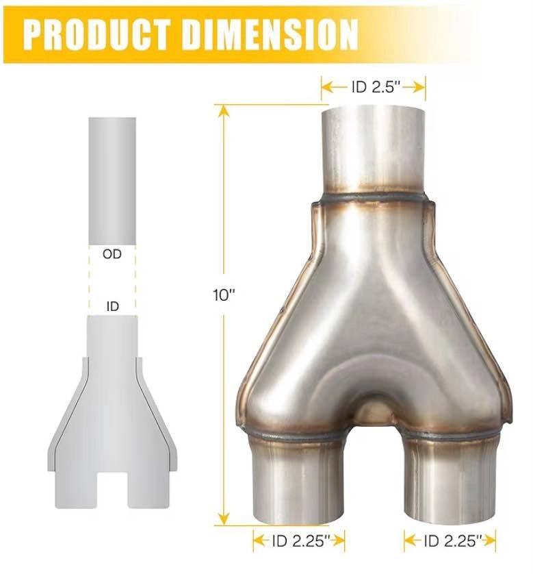 Stainless Steel Exhaust Y Pipe, 2.5" Single to 2.25" Dual Exhaust Adapter Connector for Car and Truck, 10" Overall Length, Weld-On, Universal (Open Box )