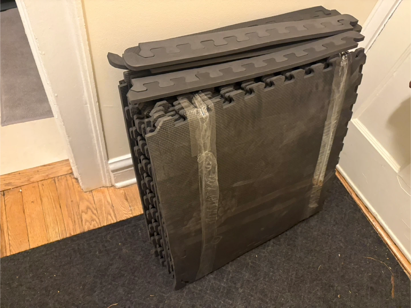 60Selling a set of foam interlocking floor mats. They are gray and appear to be in good condition. Great for a home gym or play area