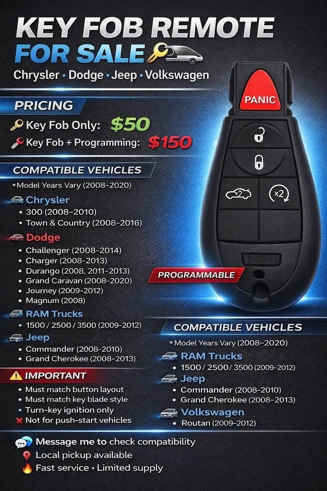 SMART Remote key fob for Chevrolet & GMC: Suburban, Tahoe & Yukon, PUSH-START, years 2015-2020, FCC ID HYQ1AA. $50 for key fob remote only, or $150 synced to your vehicle. My travel charge is included.