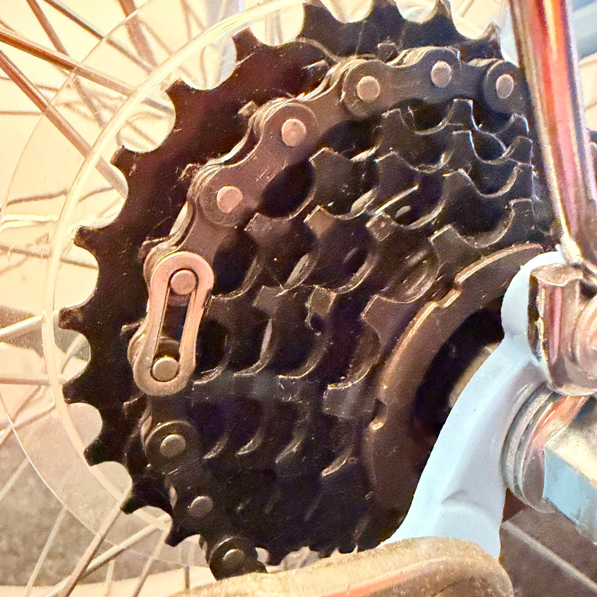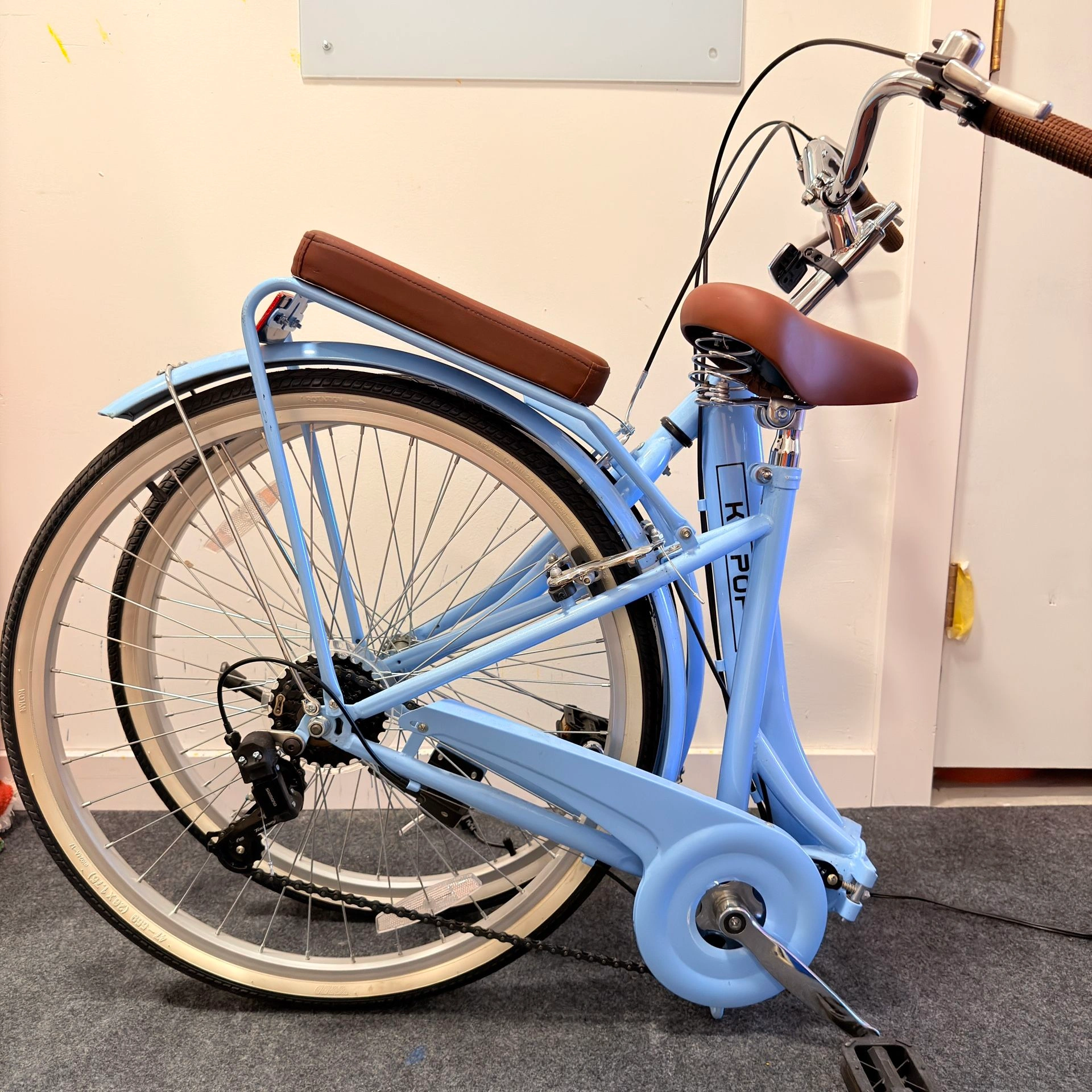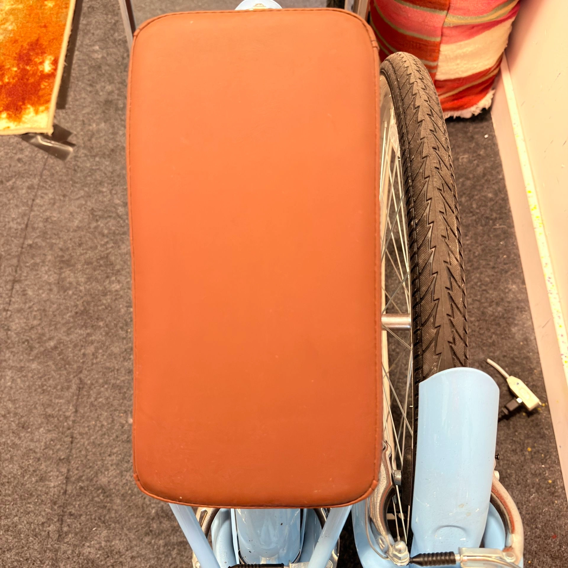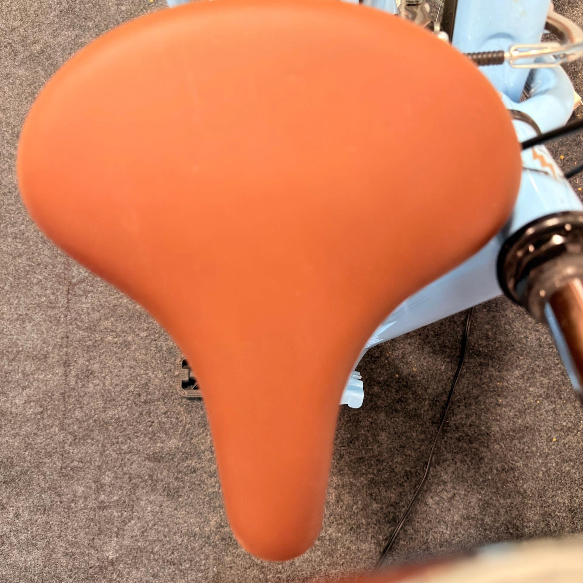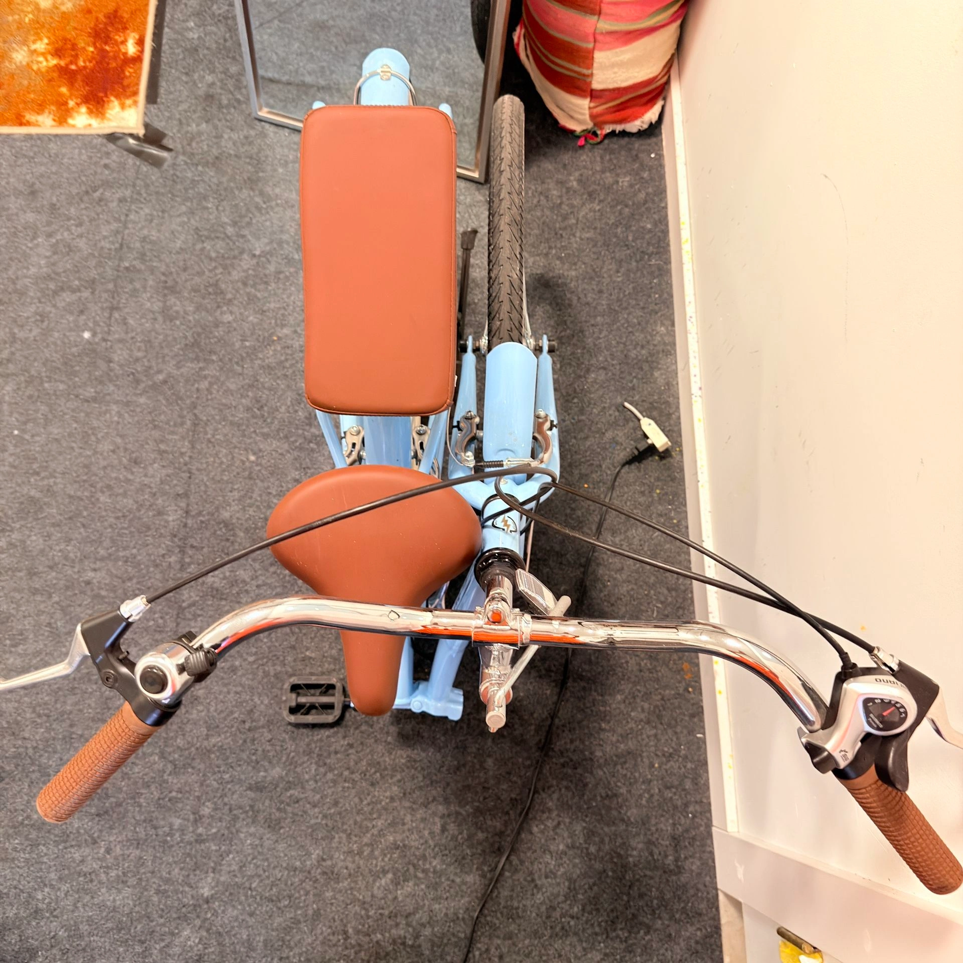 75K+POP step-through city bike in excellent condition! Only used briefly in a parking lot. Sky blue with brown saddle & grips. $275. Features: • Lightweight steel frame with step-through design • 7-speed Shimano gear system • Comfort saddle & rear passenger pad • Full front & rear fenders • Rear cargo rack • Kickstand + chain guard • Classic vintage cruiser look Perfect for cruising the city, commuting. Smooth gearing, stable handling. Everything works great. Ready to roll. Pickup in West Loop / Chicago.