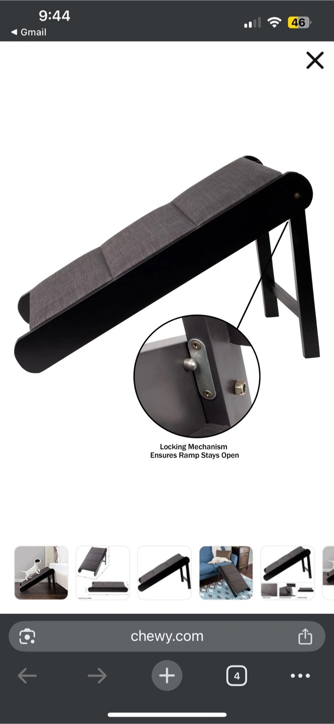 I’m selling a Foldable Wooden Dog & Cat Ramp in gray. It supports pets up to 80lbs and has a locking mechanism to ensure the ramp stays open. Dimensions are 18" height, 30" length, and 15" width. When folded, it's only 4" tall and 28" long. Comes with the original box! Brand new. My foster was adopted and never used it!