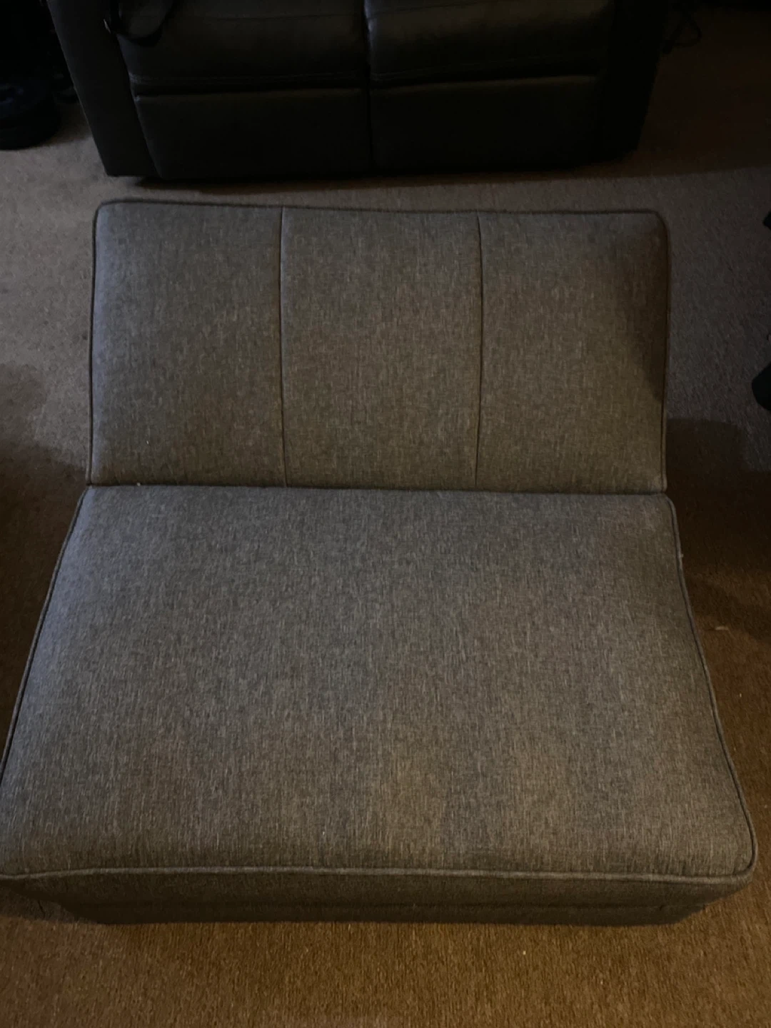 60Selling a foldable futon couch that also offers convenient storage for the legs of the couch. It's in good condition and ready to use in your home. Perfect for extra seating and keeping your space tidy!