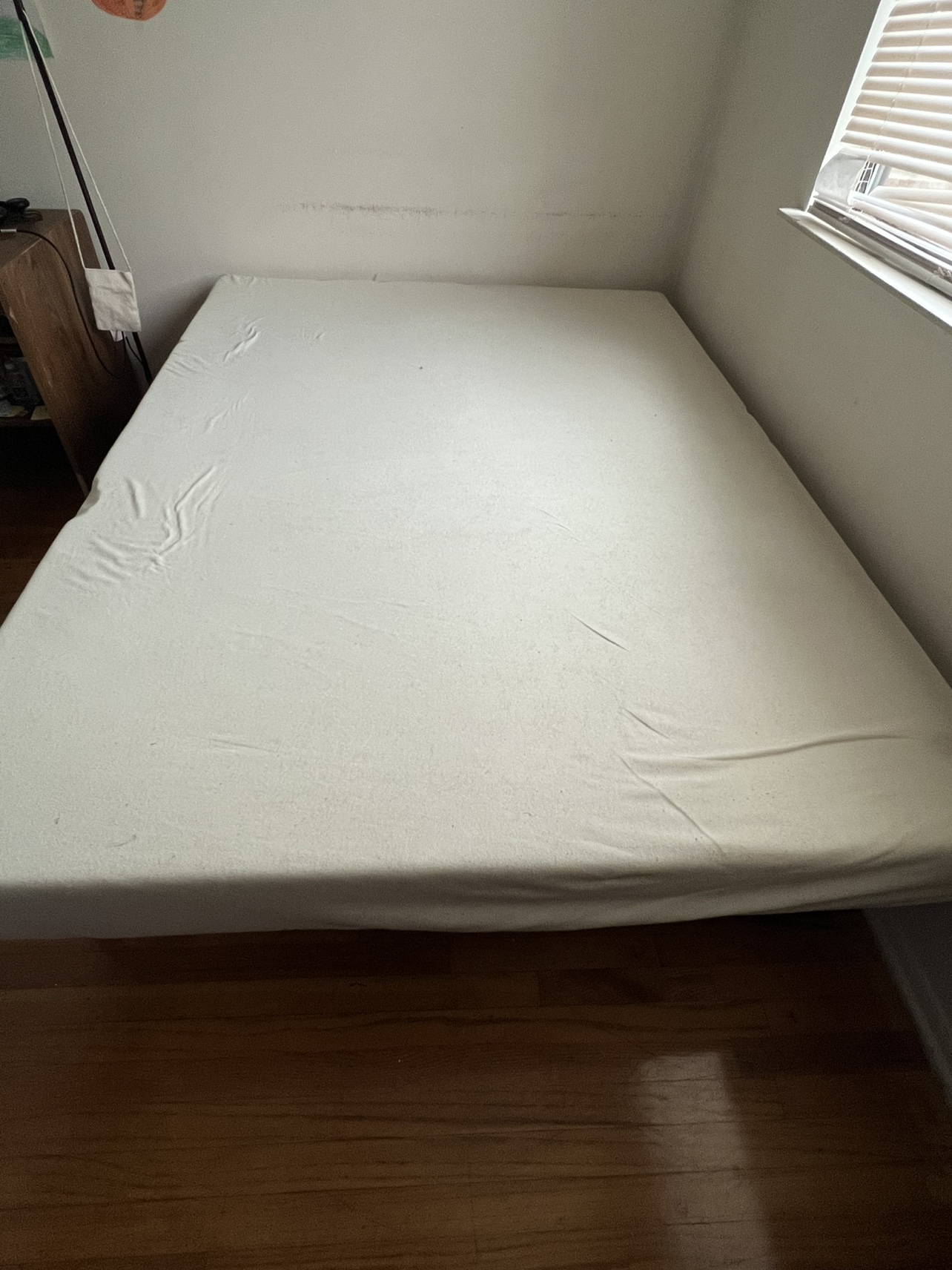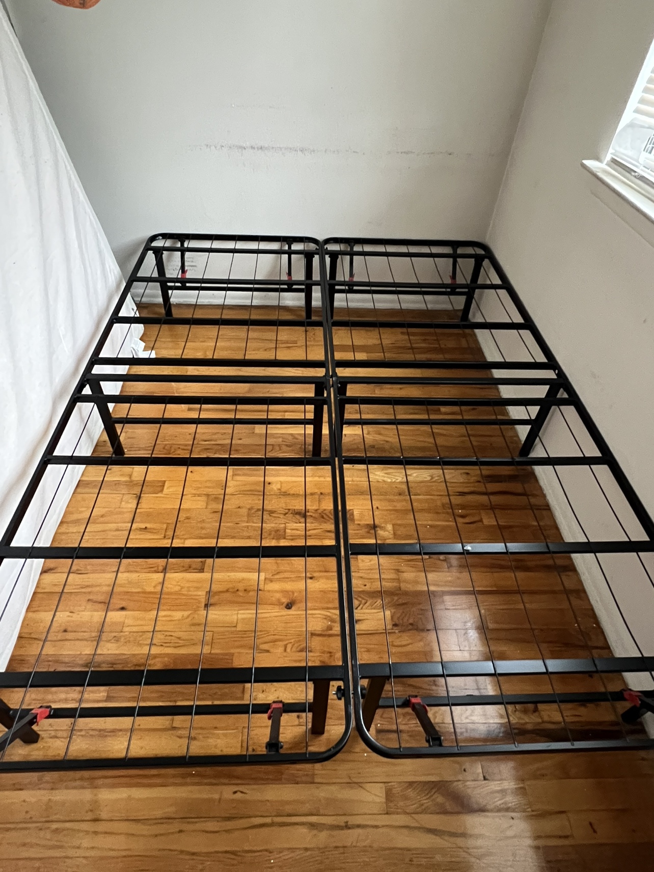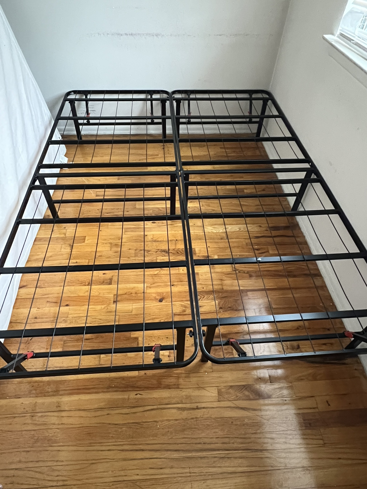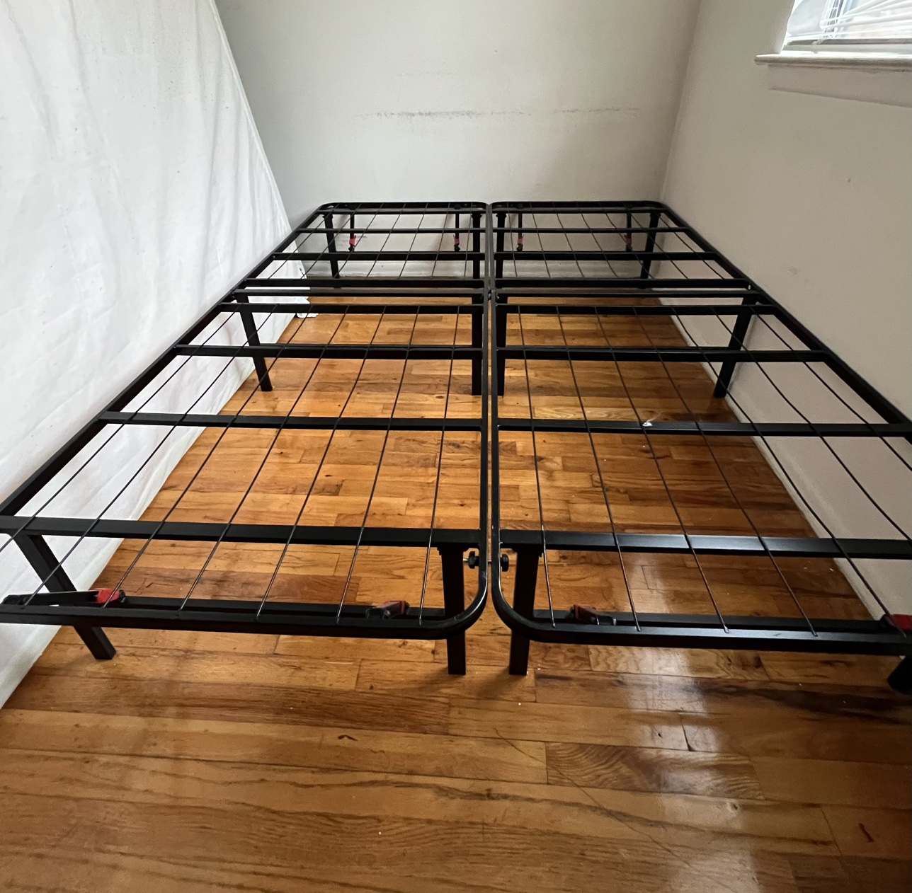 Foldable queen metal bed frame holds good for queen mattress and giving away free queen mattress with bed frame
