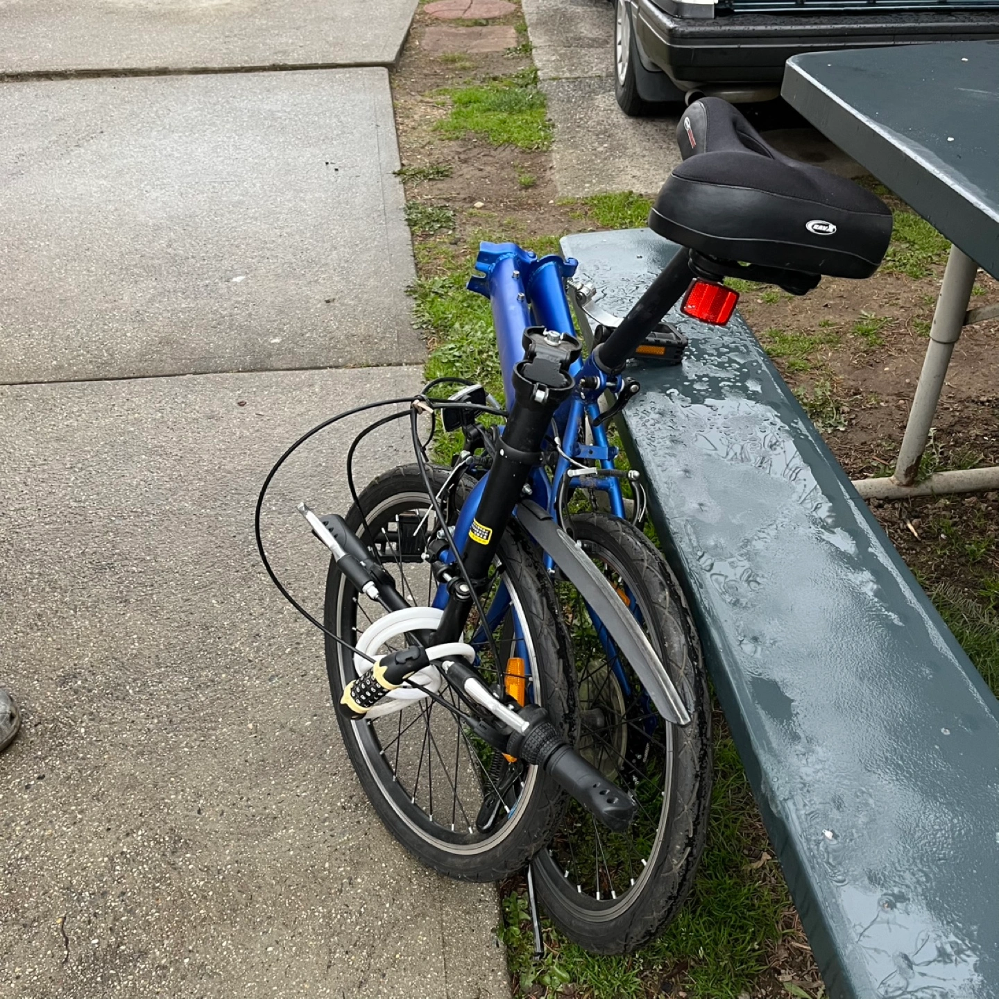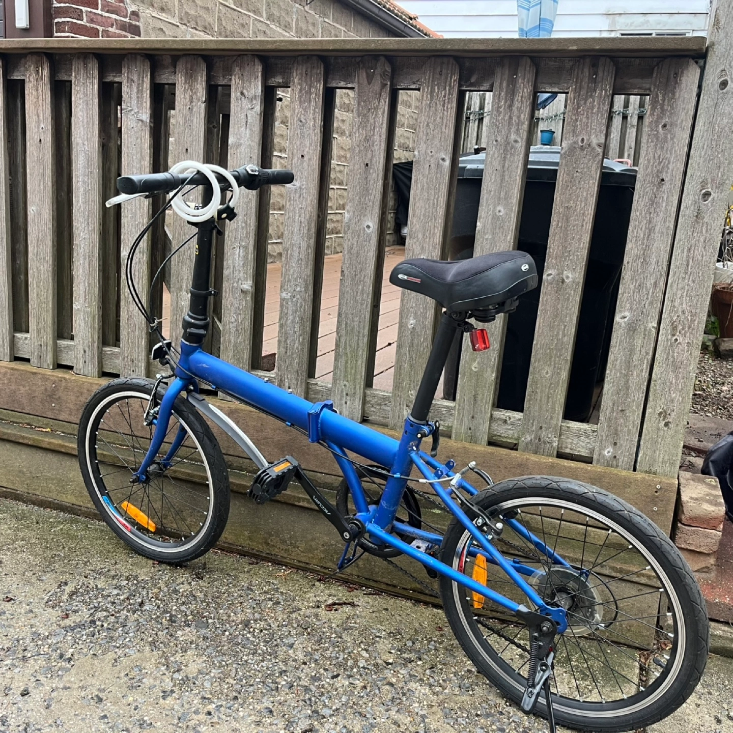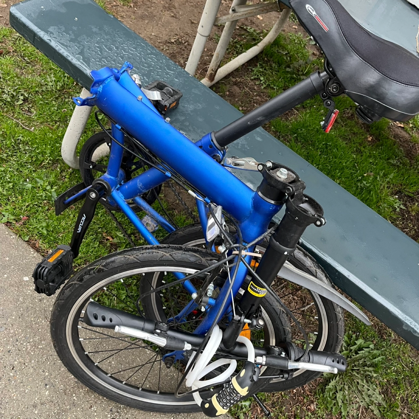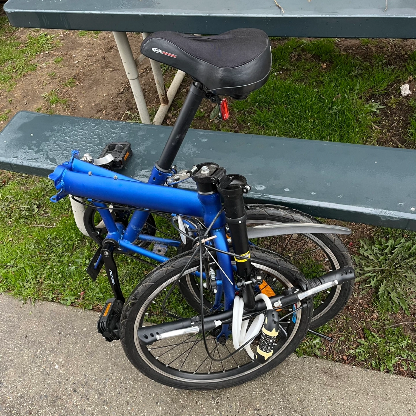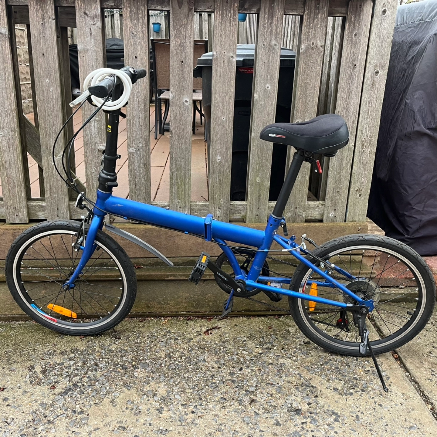 73Used folding bike. Blue color. Good for commuting or storage. Folds easily for transport.