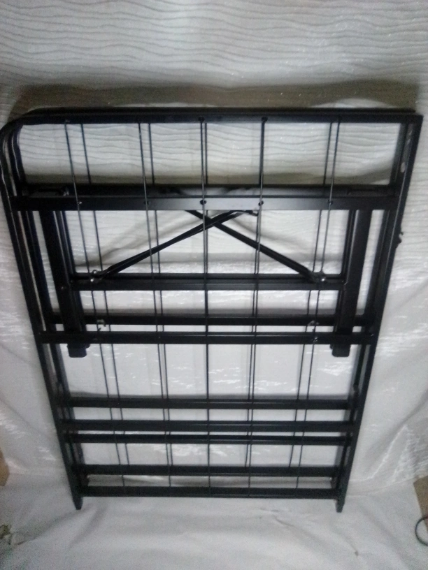 Selling a used folding metal bed frame in black. It's in good condition and perfect for saving space when not in use. Great for guest rooms or small apartments!