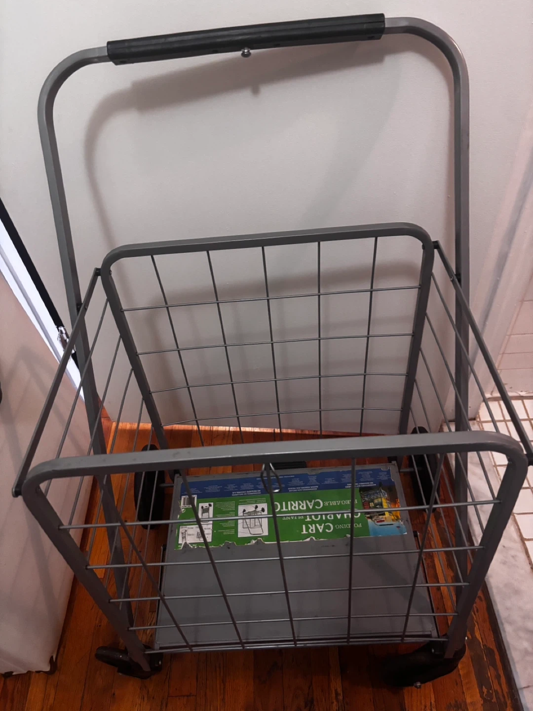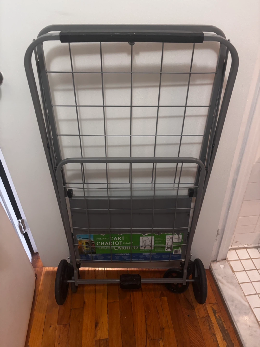 81Selling a folding shopping cart in great condition! Wiped CLEAN! It features a comfort-grip handle and a powder-coated steel structure. The cart also has ball-bearing rotating front wheels and a rear-axle pad to assist folding. It's easy to fold for storage 35x40x20x24” Large Pickup near 111th X Frederick Douglas Boulevard