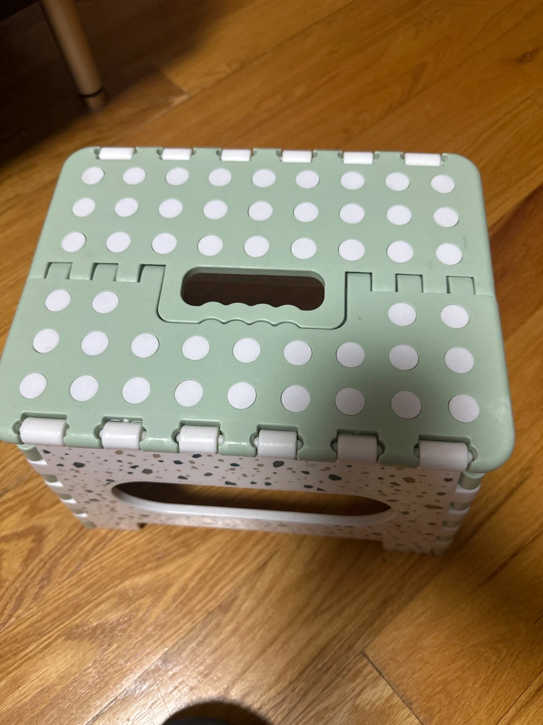 72Selling a folding step stool in good condition! It's a light green color with white polka dots on the top and a speckled design on the sides. Great for reaching those high shelves!
