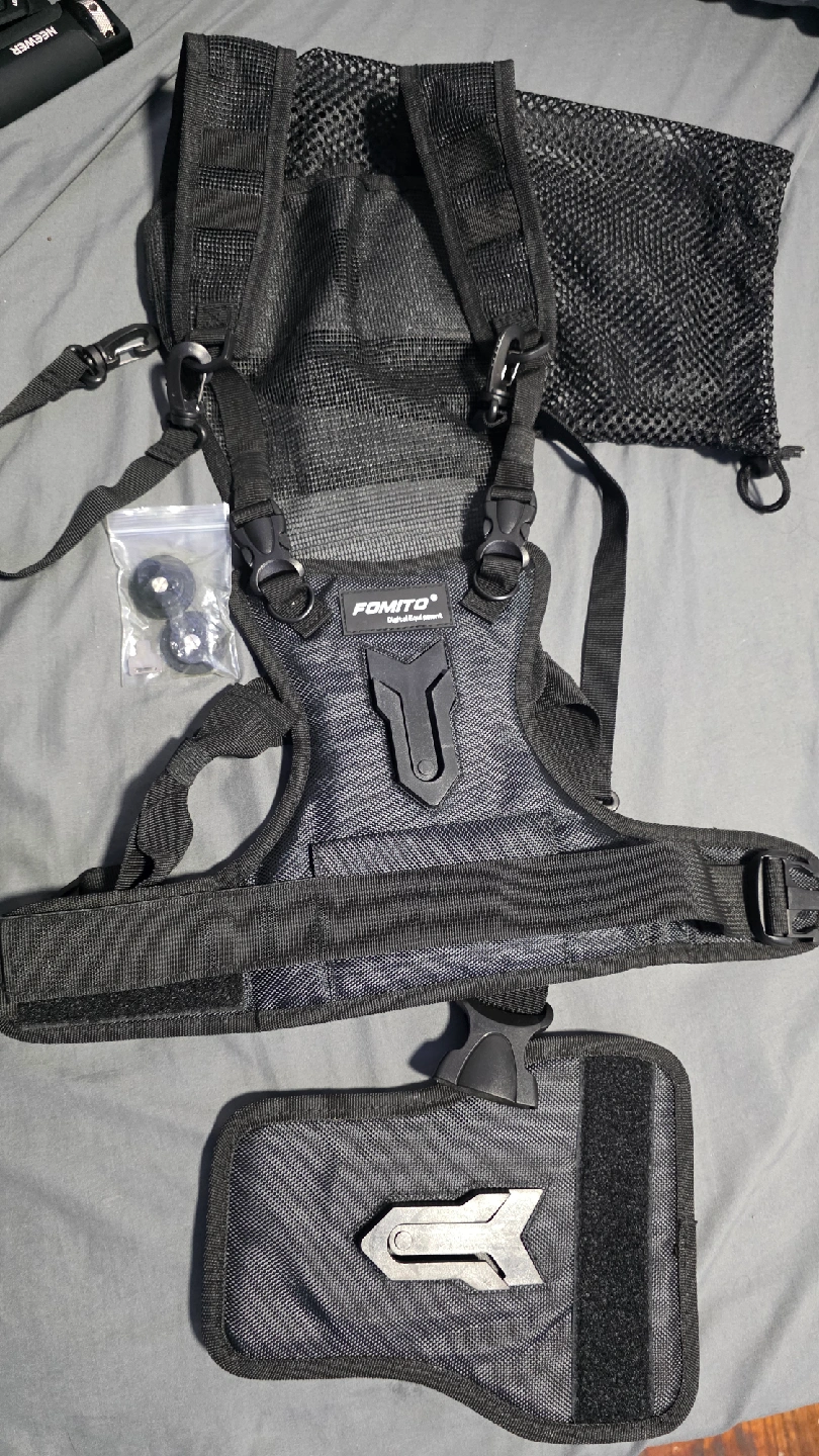 60Selling a FOMITO camera harness in black. It's in great condition and ready for your next photography adventure! It comes with all the necessary straps and attachments to securely hold your cameras. Includes a carrying bag and extra attachments. Solo interesados.