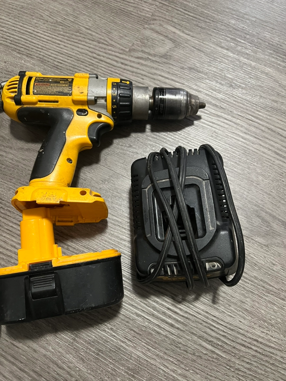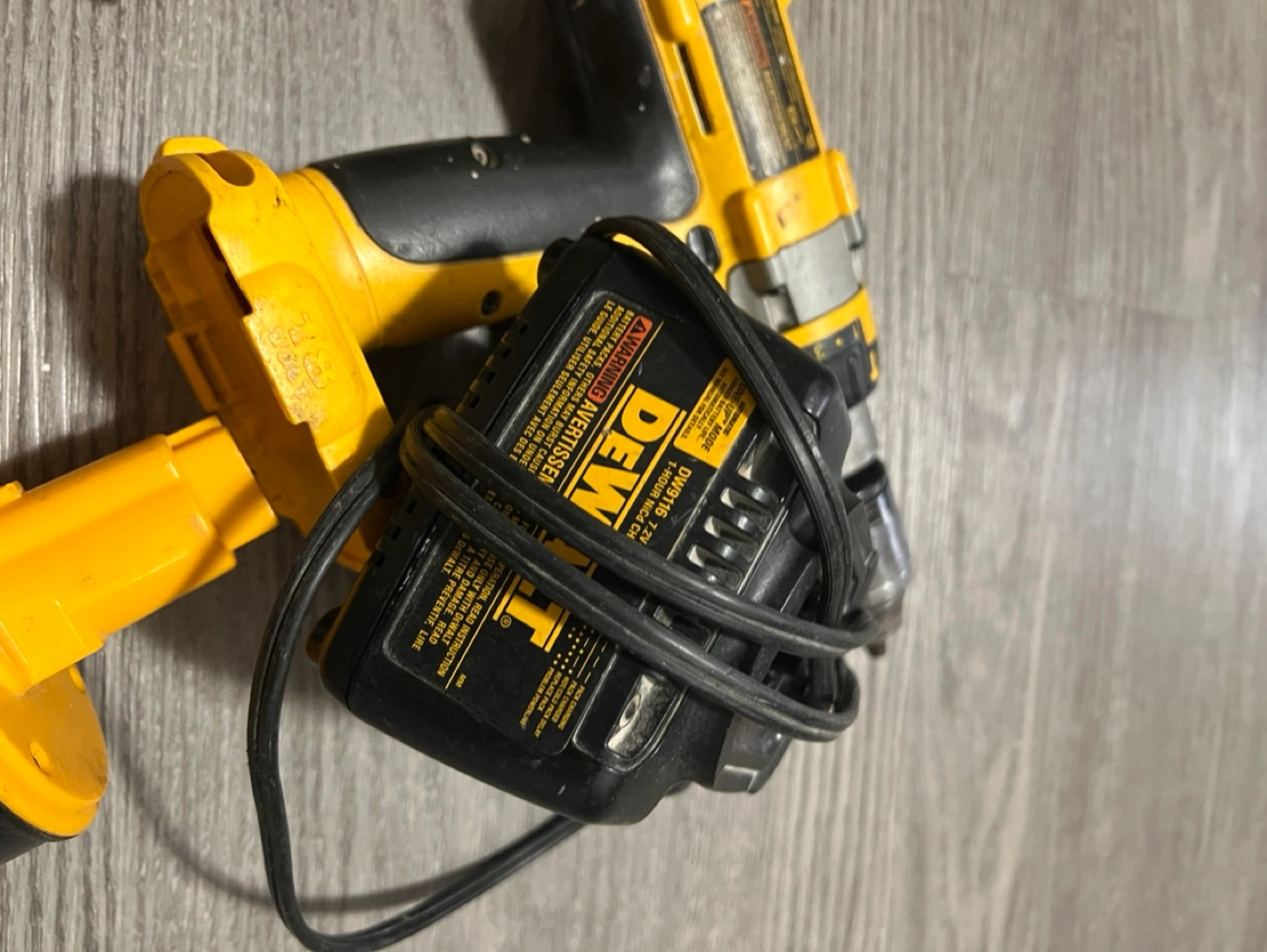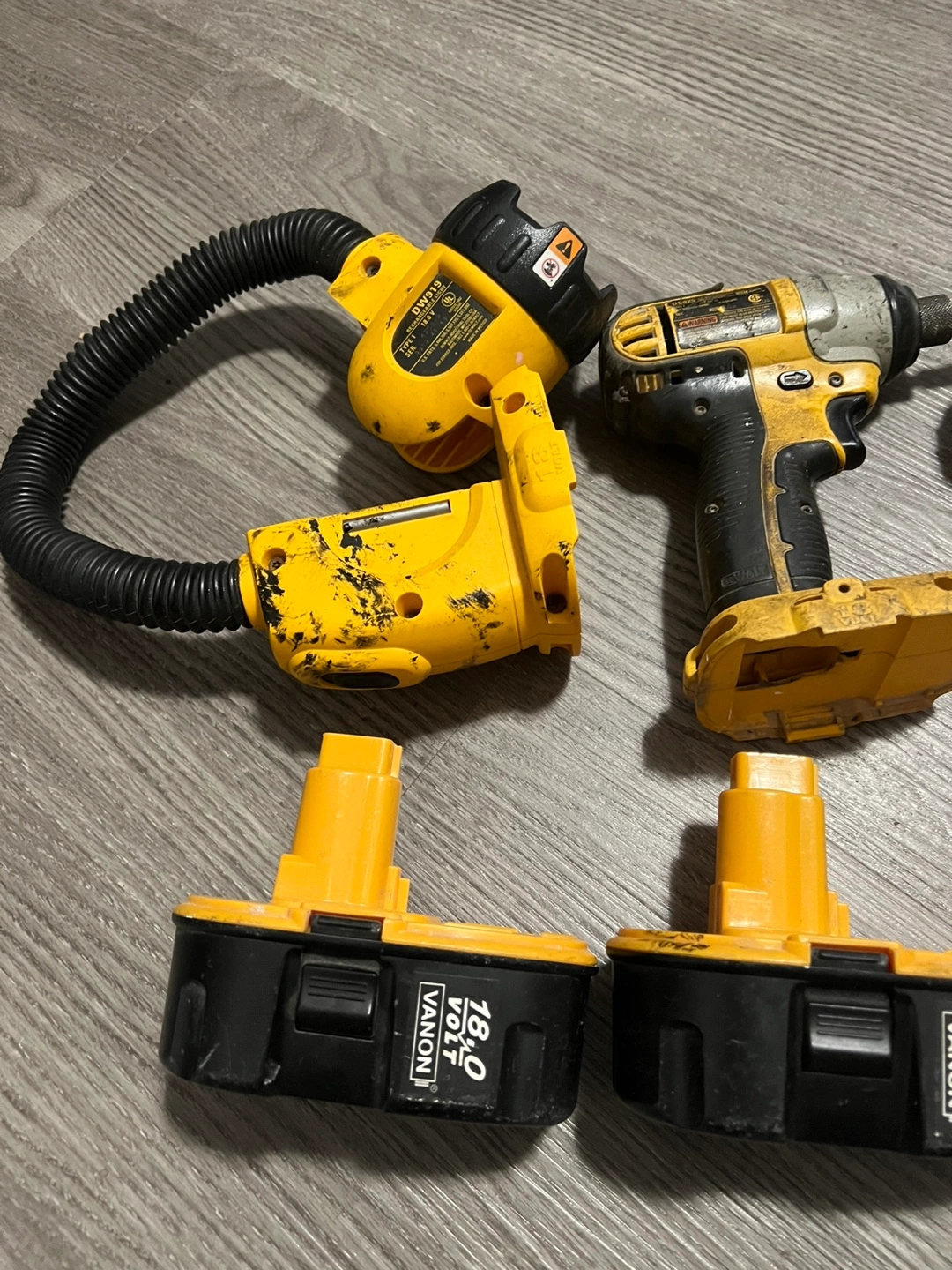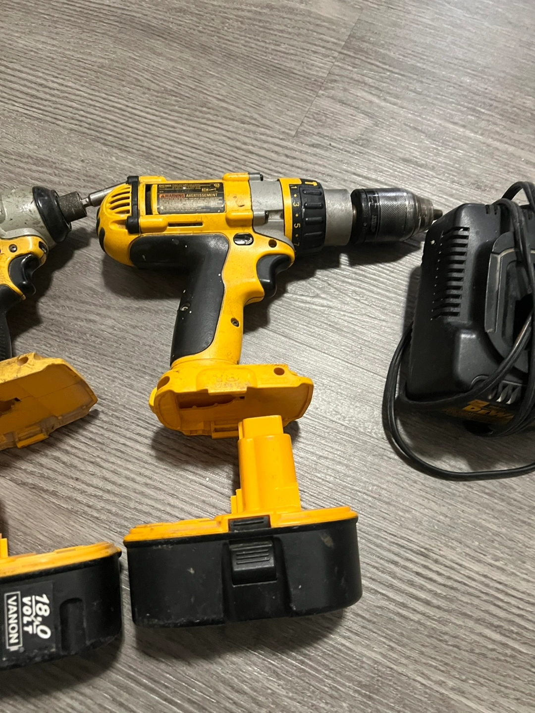 47Used Dewalt 18V drill, impact driver, and work light. Includes multiple batteries and charger. Some wear and tear.