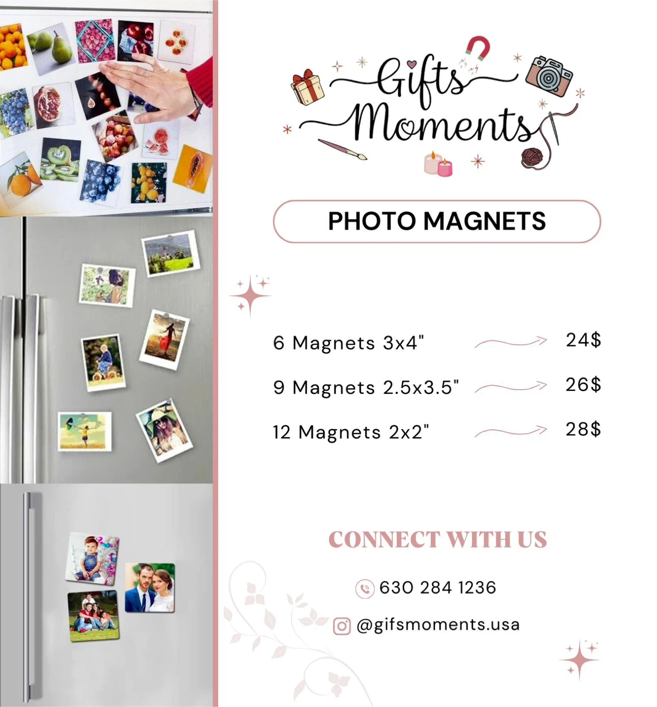 For sale Fridge Magnets fully personalized different sizes for your personal photos or for commercial purposes, we can design your company info magnet for clients..! We ship by USPS 5$ extra cost Email giftmoments.usa@gmail.com