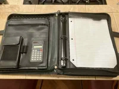 10Selling a black leather portfolio from FORAY. It features multiple compartments and a calculator. Great for organizing documents and other essentials