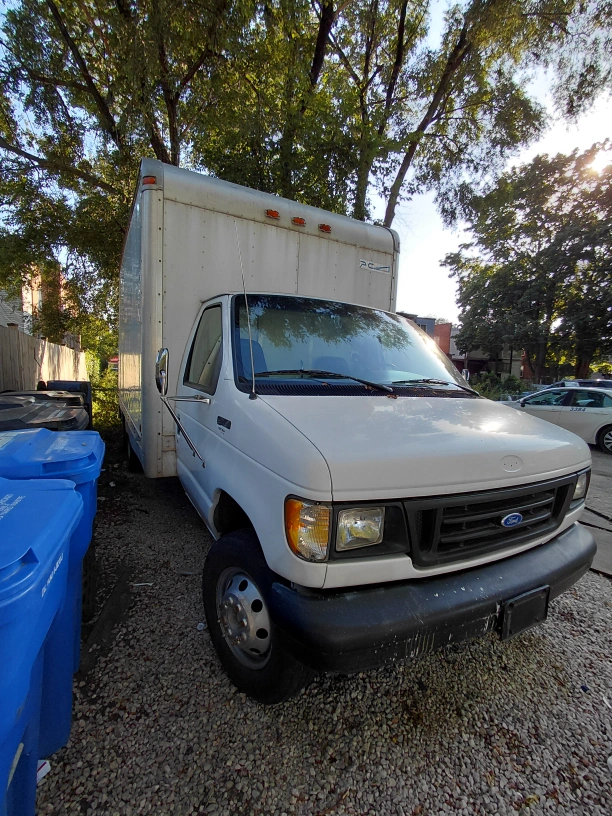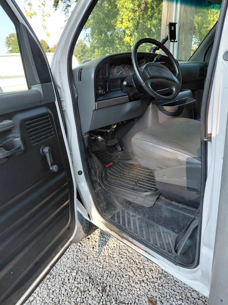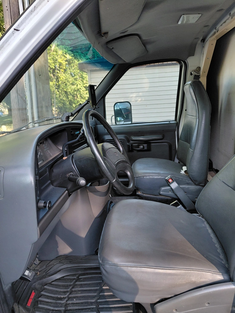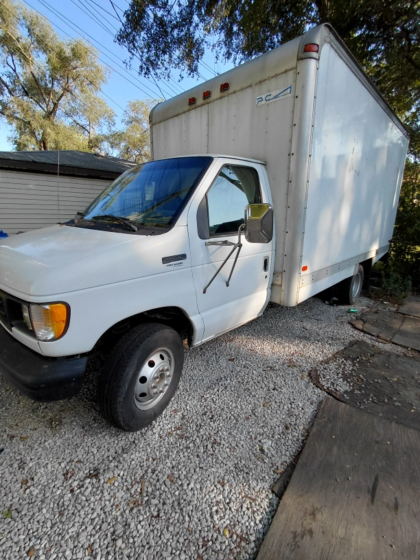 Selling a Ford E-350 box truck. 5.8 v8 It appears to be in used condition, with some wear and tear visible in the interior and exterior. The odometer reads 186473.5 miles. Perfect for moving or storage needs!
