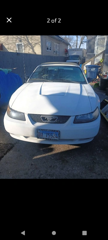 White Ford Mustang. 40th Anniversary Edition. Needs some TLC. Sold as is. 2004 158 miles