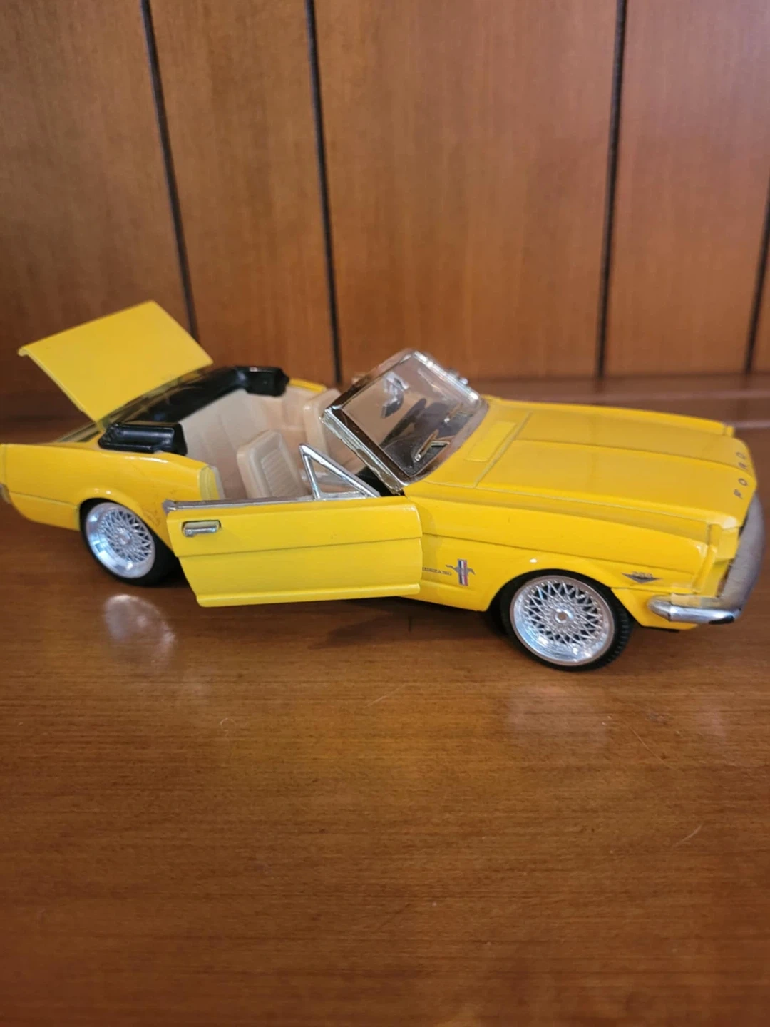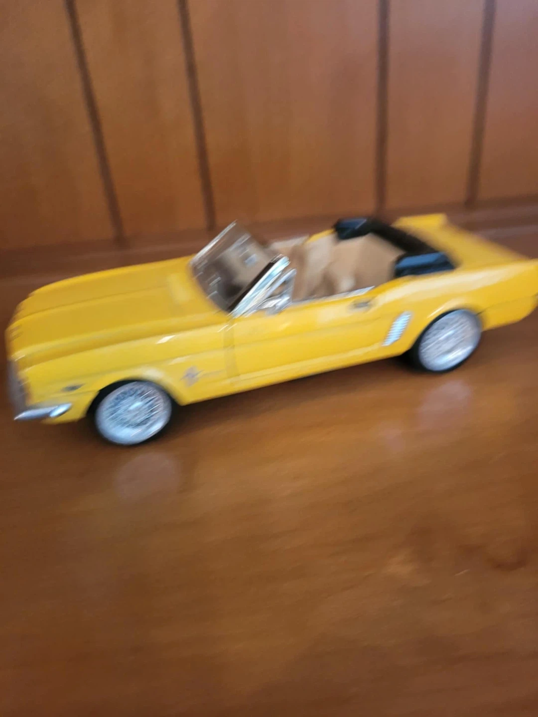 Selling a yellow Ford Mustang diecast car. It's in good condition and would be a great addition to any collection! The car is a convertible model.