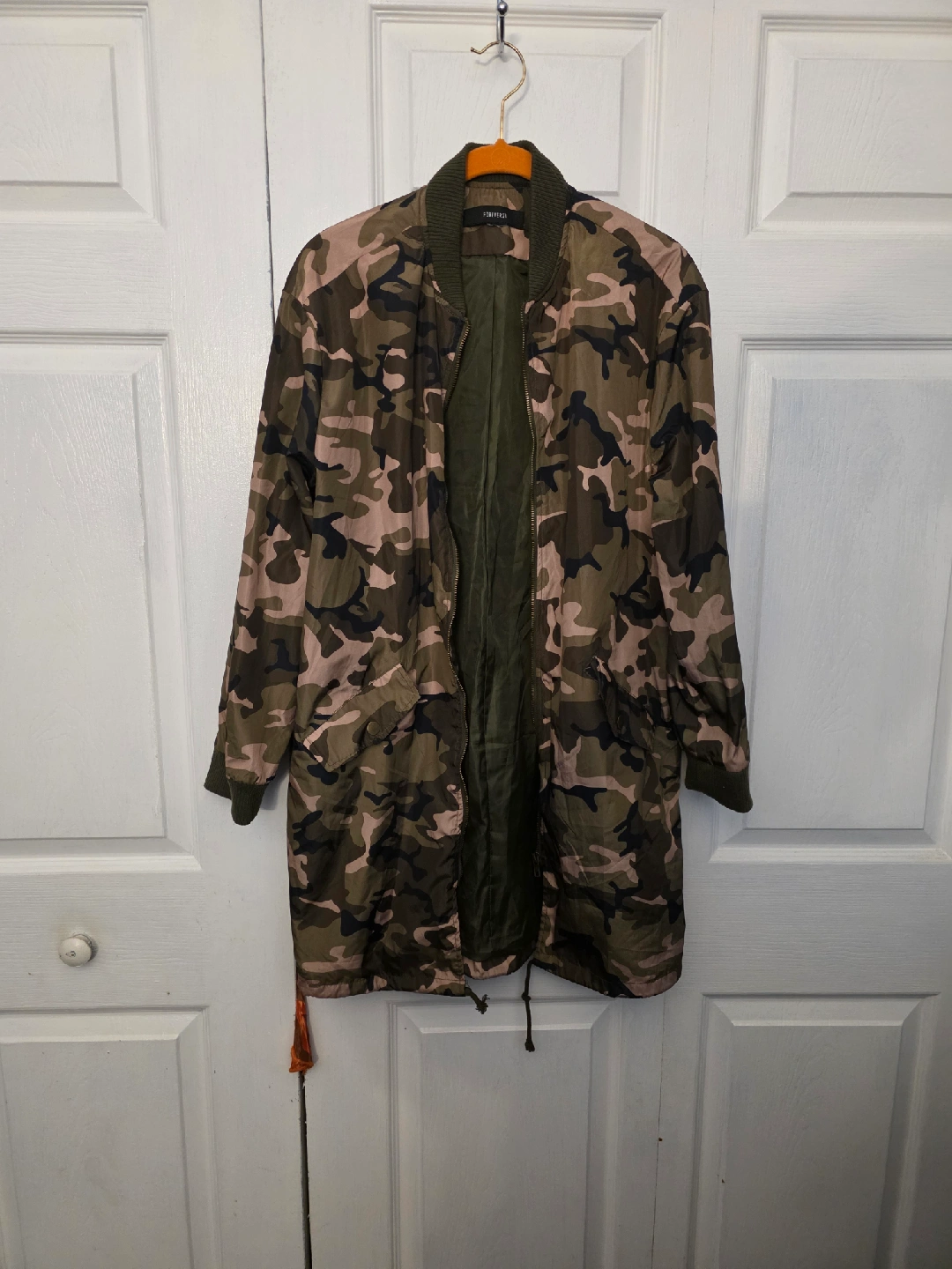 Here's a Forever 21 jacket with a cool camo print! It's perfect for adding a stylish touch to any outfit. The jacket is lightweight and comfortable, making it great for layering or wearing on its own