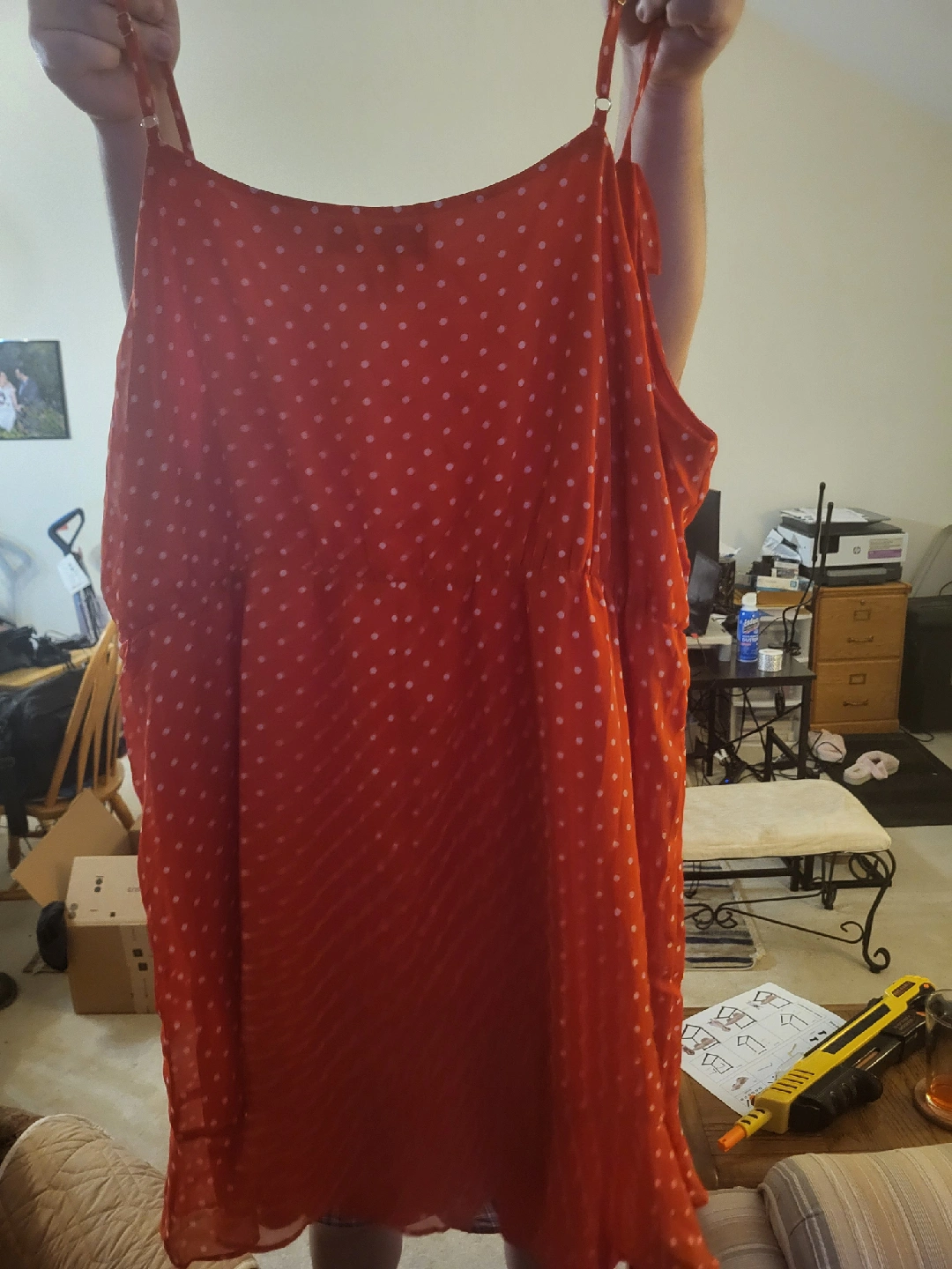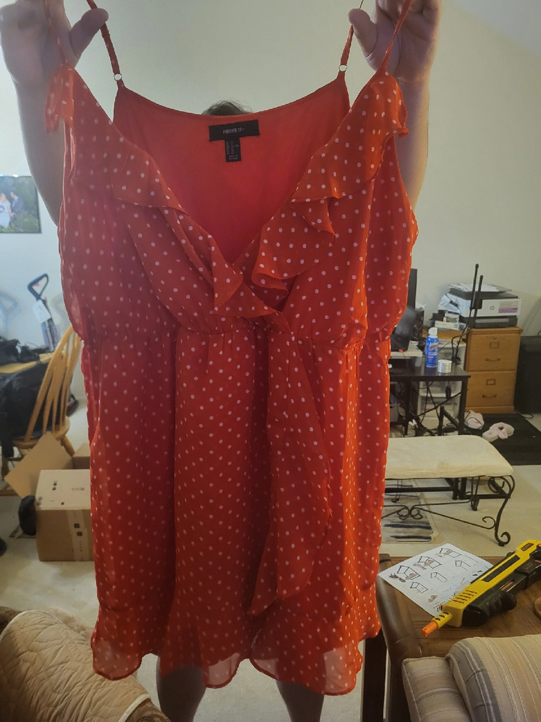 Selling a Forever 21+ dress in size 3X, never worn. It's a vibrant red with a cute polka dot pattern. Perfect for a casual outing or a summer day!