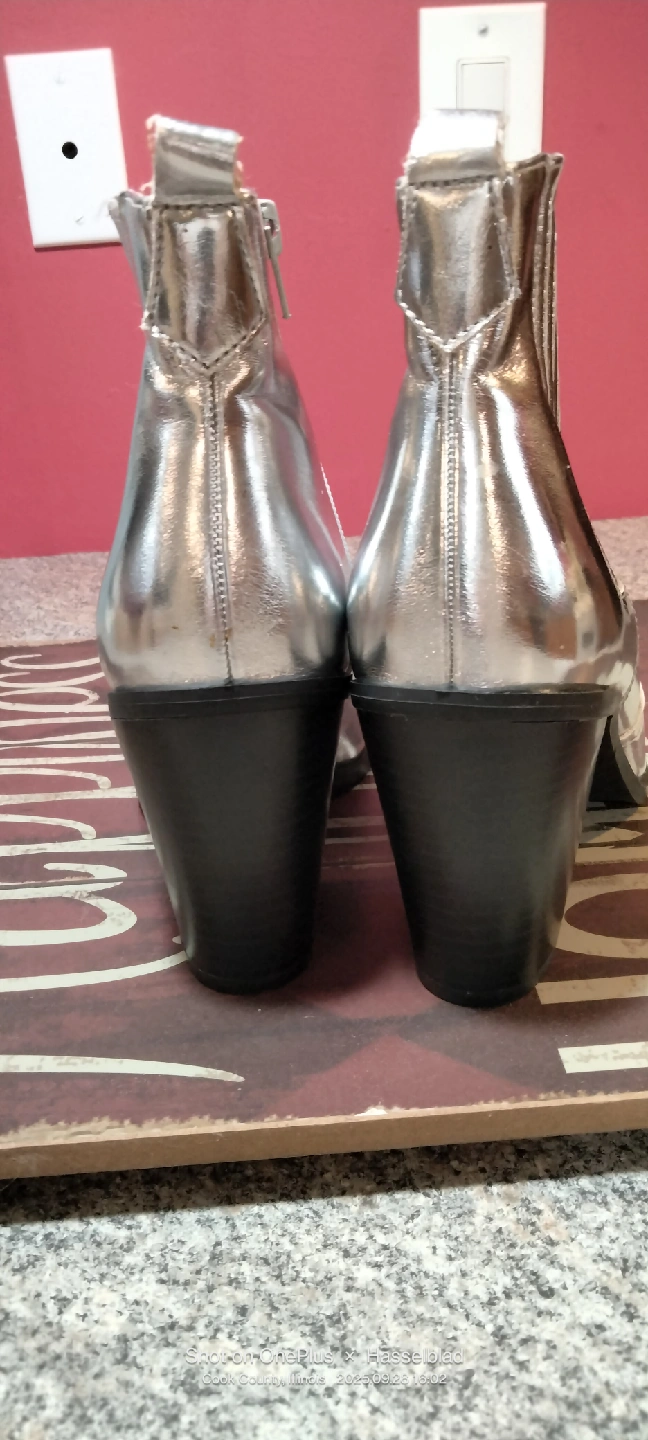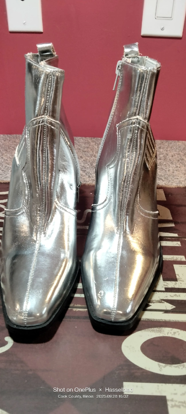 Forever 21 silver ankle boots in size 7.5 They feature a stylish design with a block heel and zip closure. These boots are perfect for adding a bit of shine to your outfit! New never been worn no tags no box.