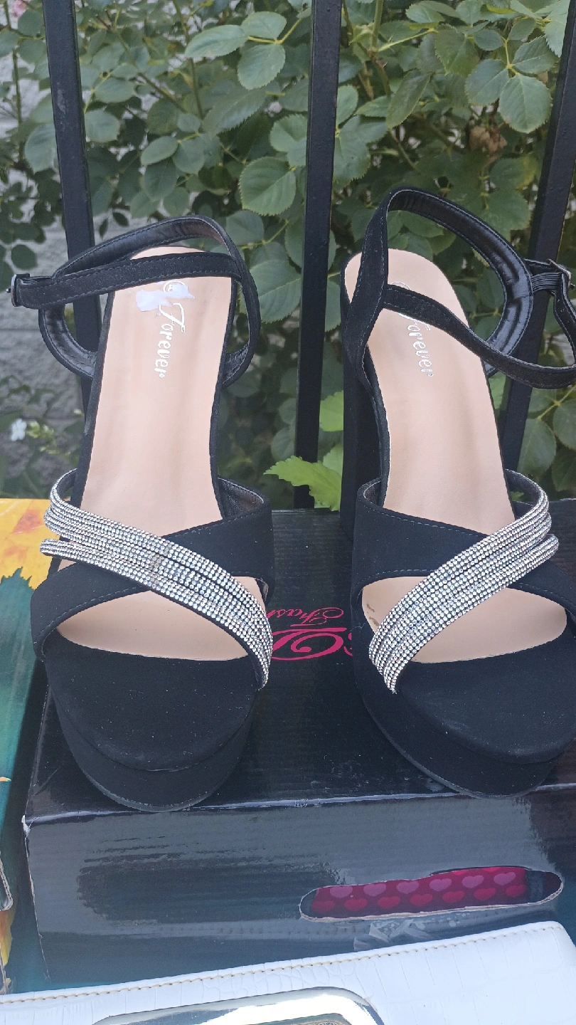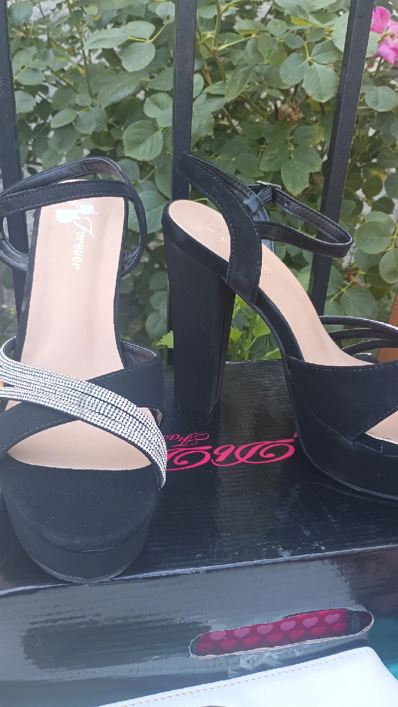 10These Forever brand platform heels are in great condition and ready for a new home! They're black with a cute rhinestone strap detail, perfect for dressing up any outfit