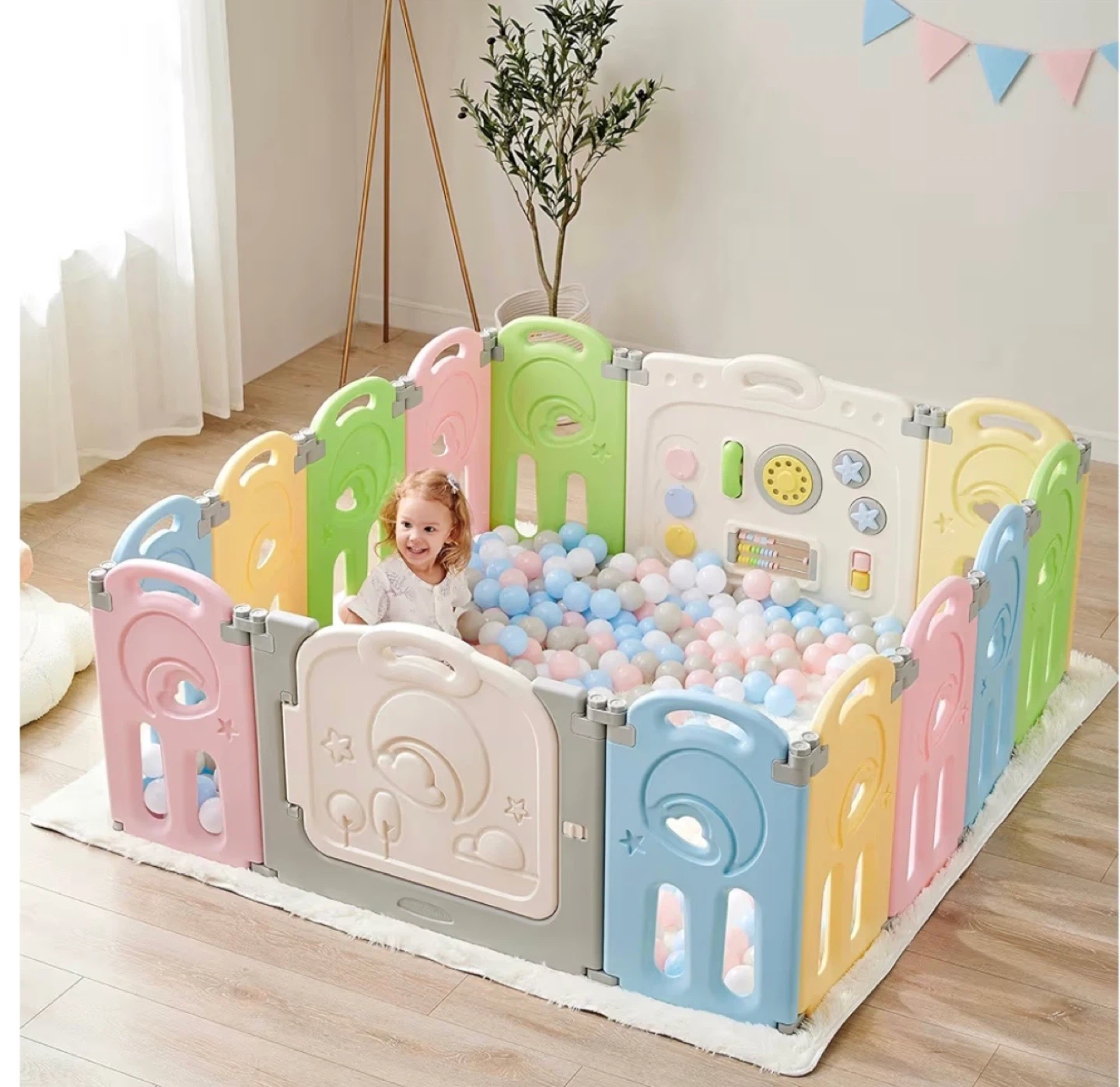 29Selling a Fortella Cloud Castle Foldable Playpen in a fun, multicolor design! This playpen features a 4-panel extension. Perfect for creating a safe and engaging play area for your little one. Originally bought for $62.99!