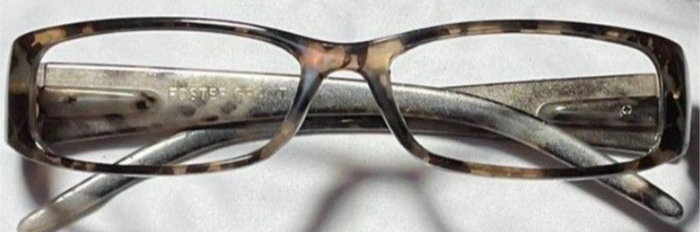 Selling a pair of Foster Grant glasses FRAME ONLY They are in good condition and ready for a new home! The frame has a tortoiseshell pattern.