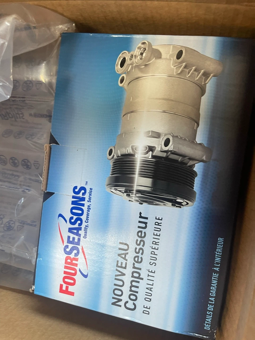 Selling a FOURSEASONS Nouveau Compresseur. The box says "DE QUALITÉ SUPÉRIEURE".
