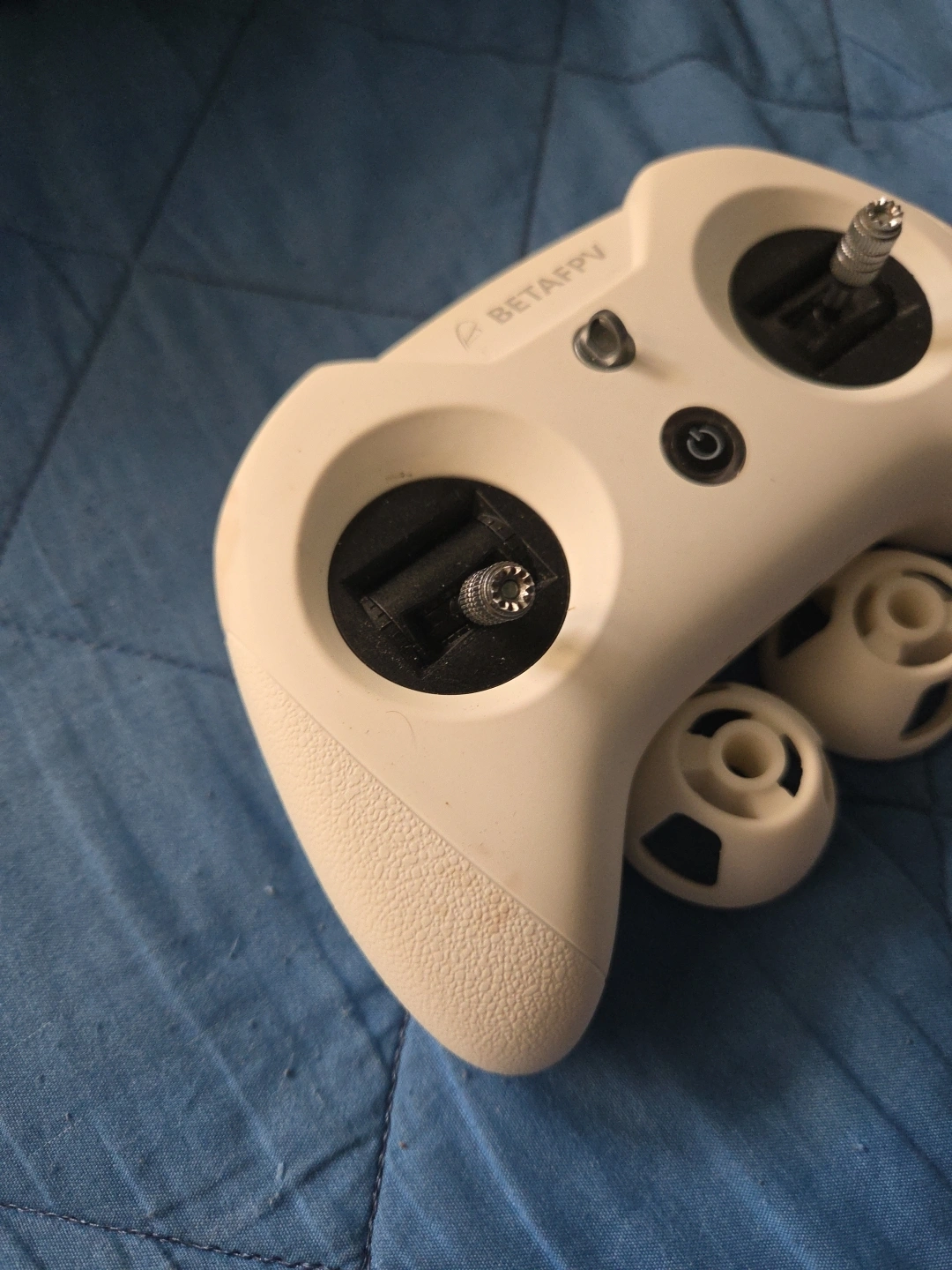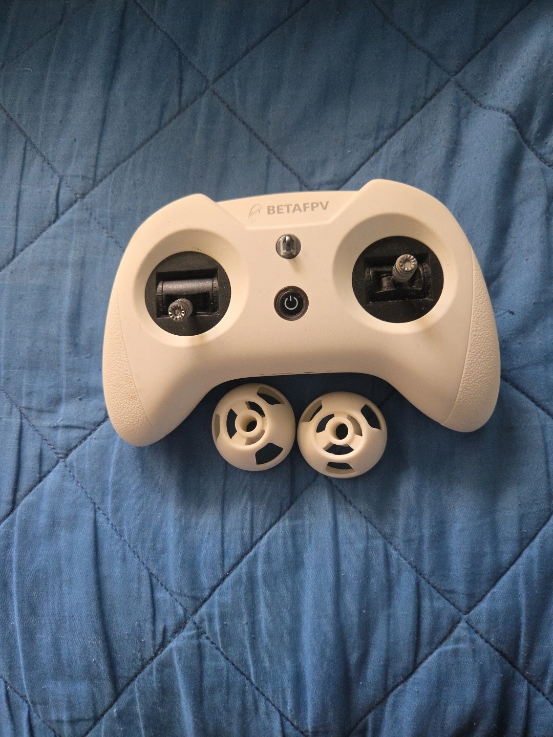 Selling a BetaFPV radio transmitter controller. It appears to be in good condition and includes additional components. one of the controller joystick was lost. eslr
