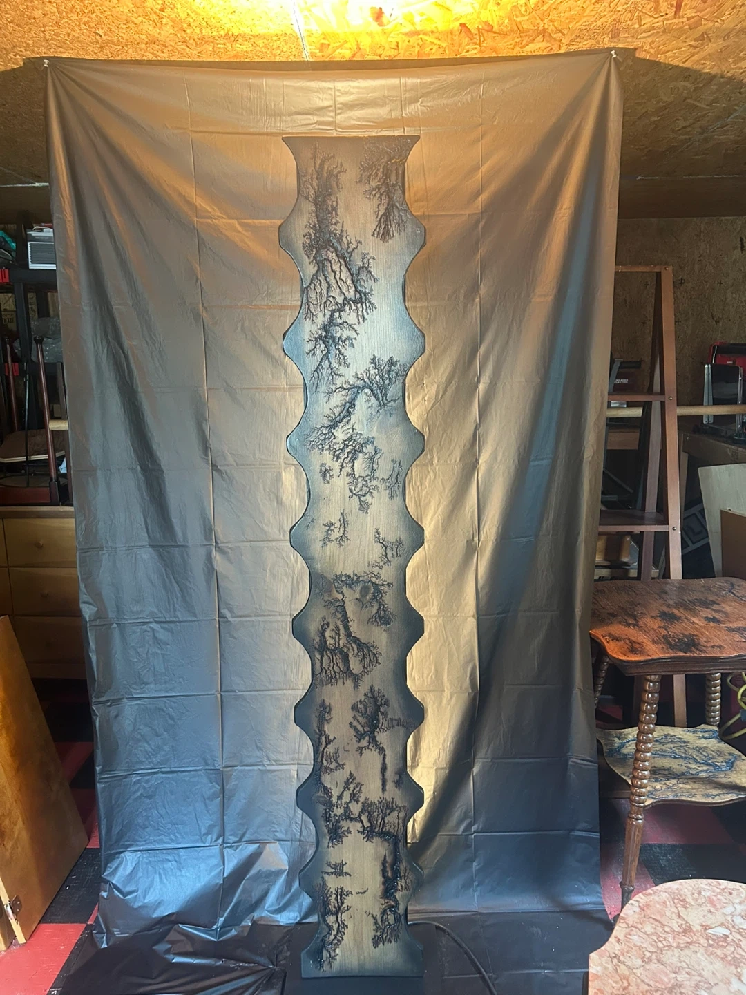 10Fractal burned floor lamp , full length light on back and light on top with 3 settings , about 6ft tall pick up and cash only
