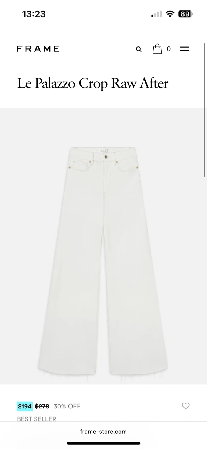 18Selling a pair of FRAME Le Palazzo Crop Raw After jeans in white. They're in great condition and ready for a new home! These stylish jeans feature a cropped length and a raw hem, perfect for a trendy look. Originally listed for $278, now available at a great price! Wearing 2times, only washed once! 26 size!