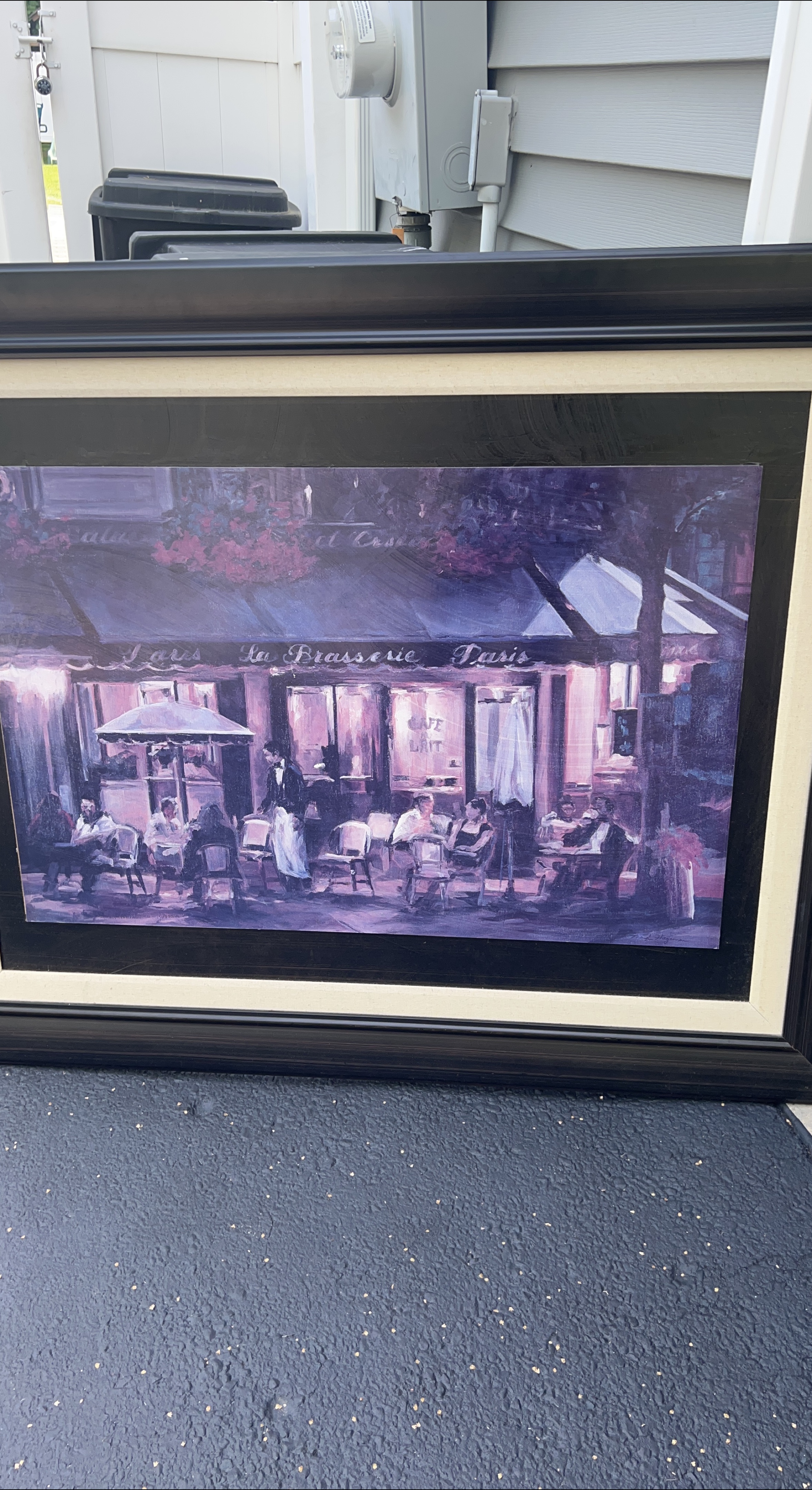 40Selling a framed art print of La Brasserie in Paris. It's a lovely piece that could add a touch of Parisian charm to your home