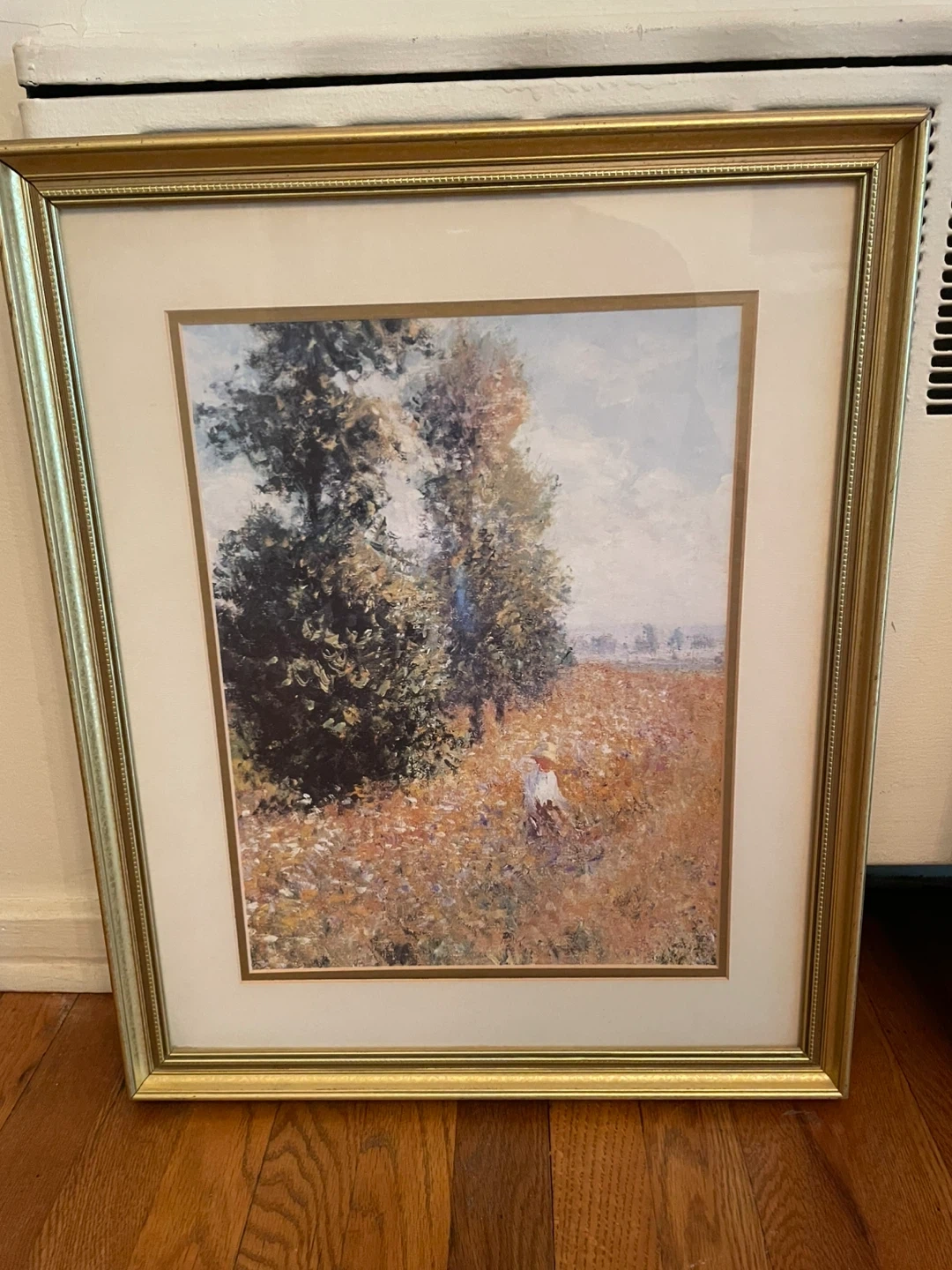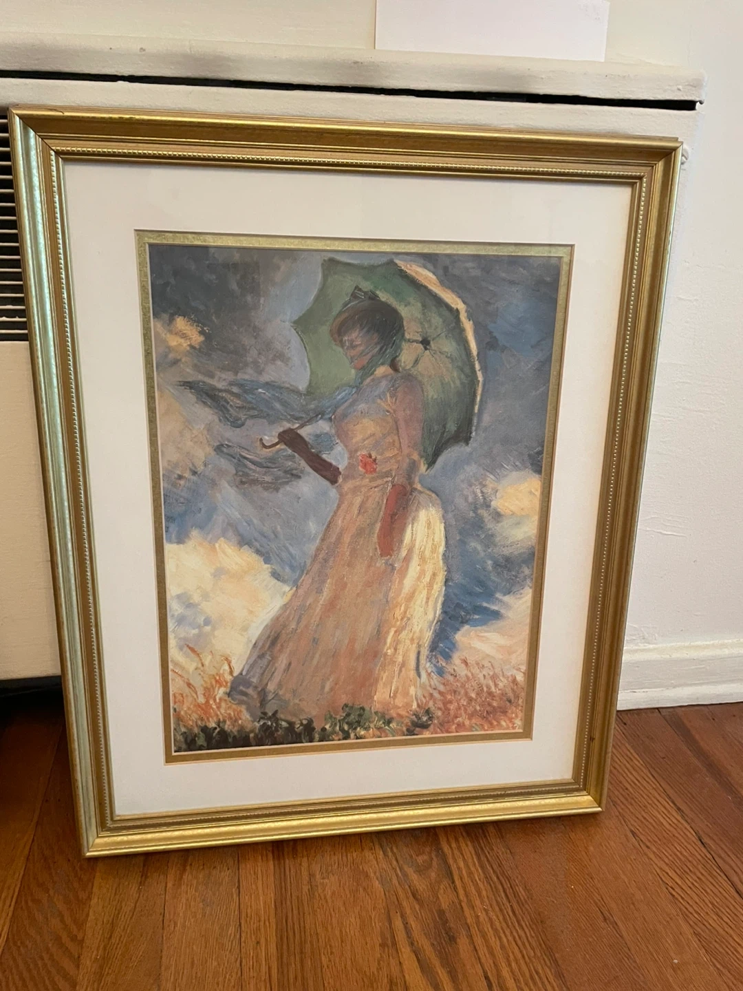 70These are framed prints of impressionist paintings. They would be a great addition to any home! “Woman with parasol turned to the left” by Claude Monet Print 75 OBO 12x16 “ Paysage Pres De Giverny” by Claude Monet Print 75 OBO 12x16